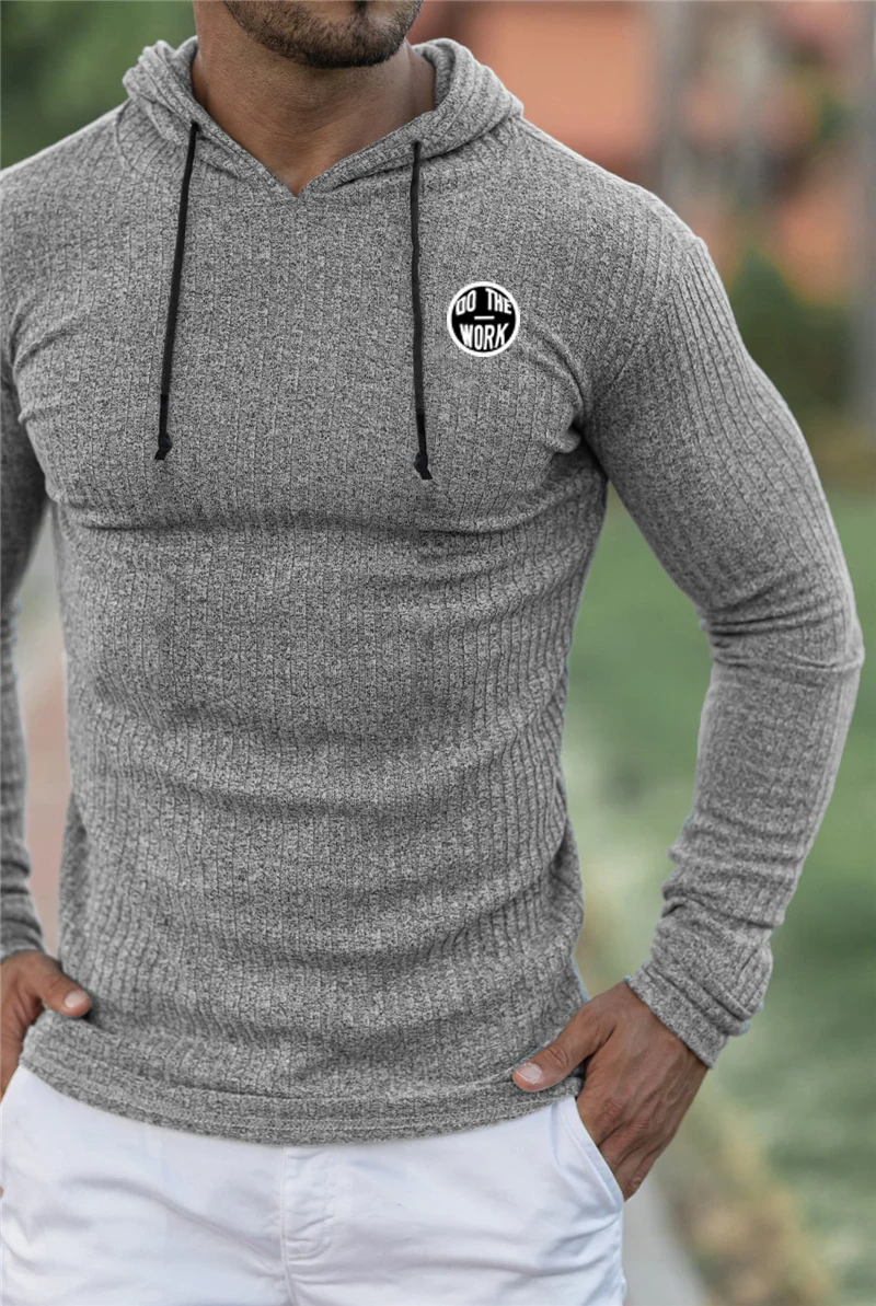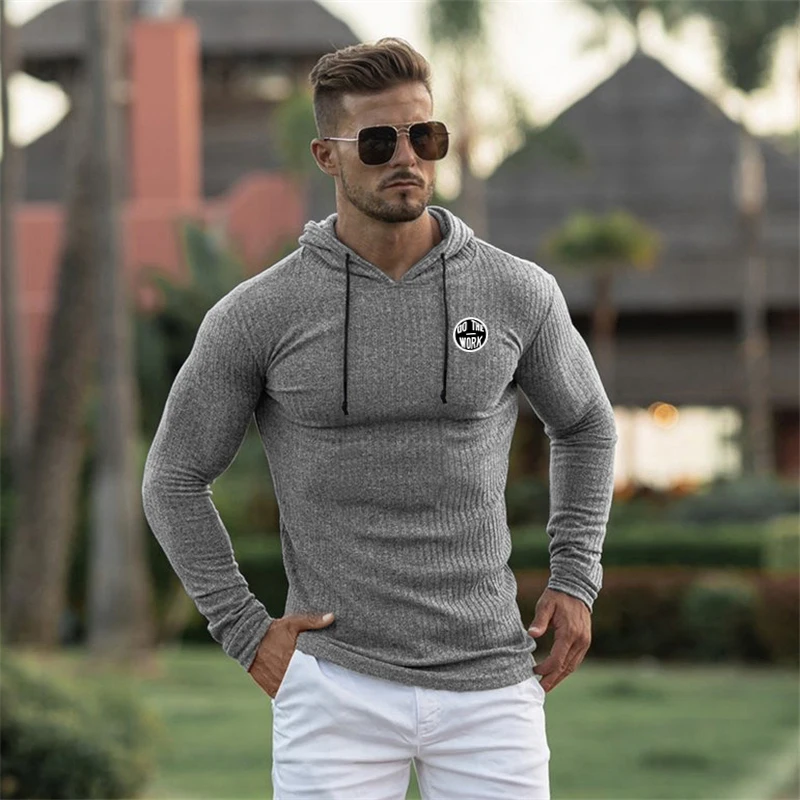 Осенняя Модная вязаная футболка с капюшоном, мужские облегающие свитера, трикотажная одежда, мужские пуловеры с длинным рукавом, футболки, мужские спортивные пуловеры