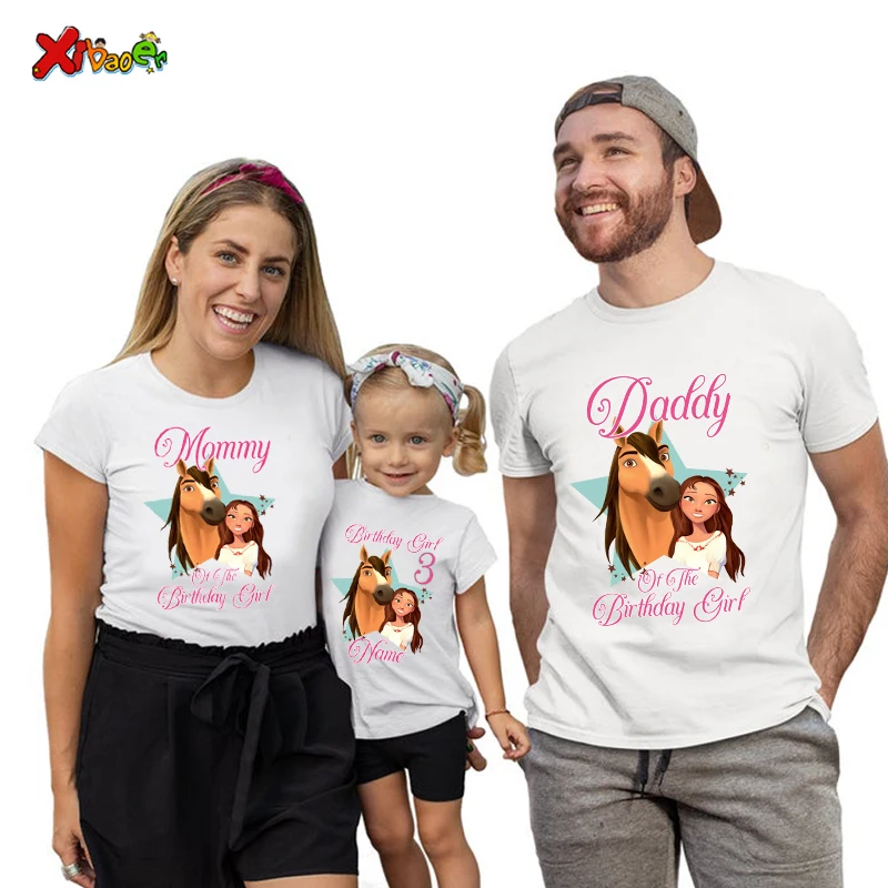 Рубашка на день рождения для семьи, подходящая одежда, футболка для вечевечерние с лошадью для девочек, подарок с именем на заказ, детская одежда набор одежды для детей, папа