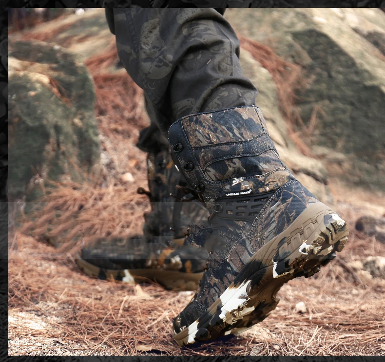 Коричневые камуфляжные высокие тактические ботинки, Мужская водонеп...