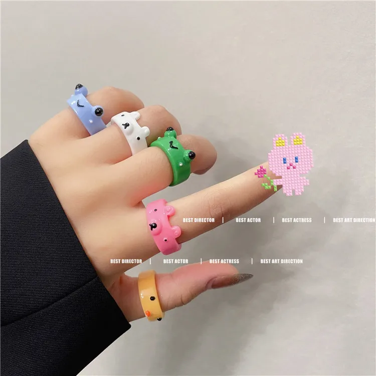 Y2k красочное акриловое кольцо в виде лягушки цыпленка животного из смолы для женщин женское модное простое милое очаровательное кольцо дружбы пары ювелирное изделие в подарок