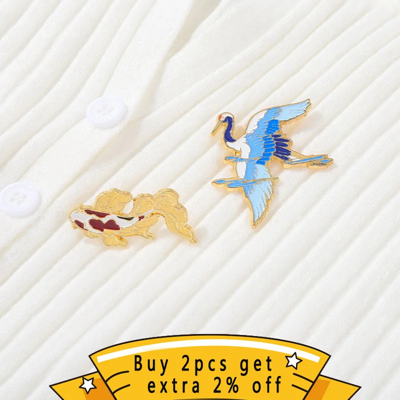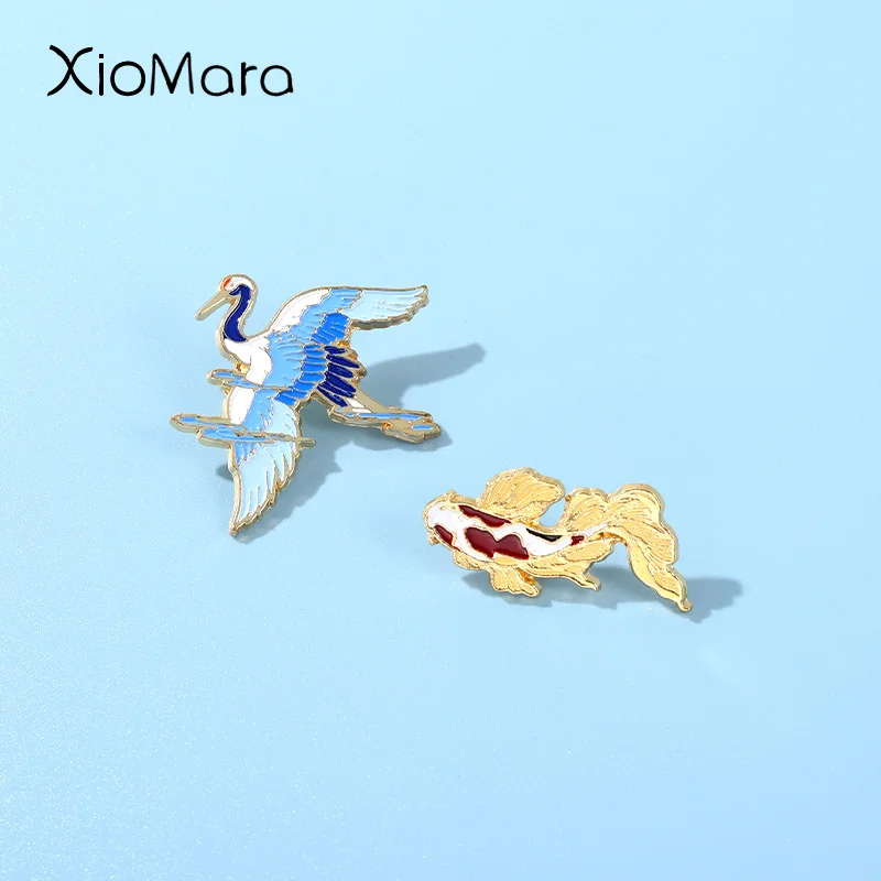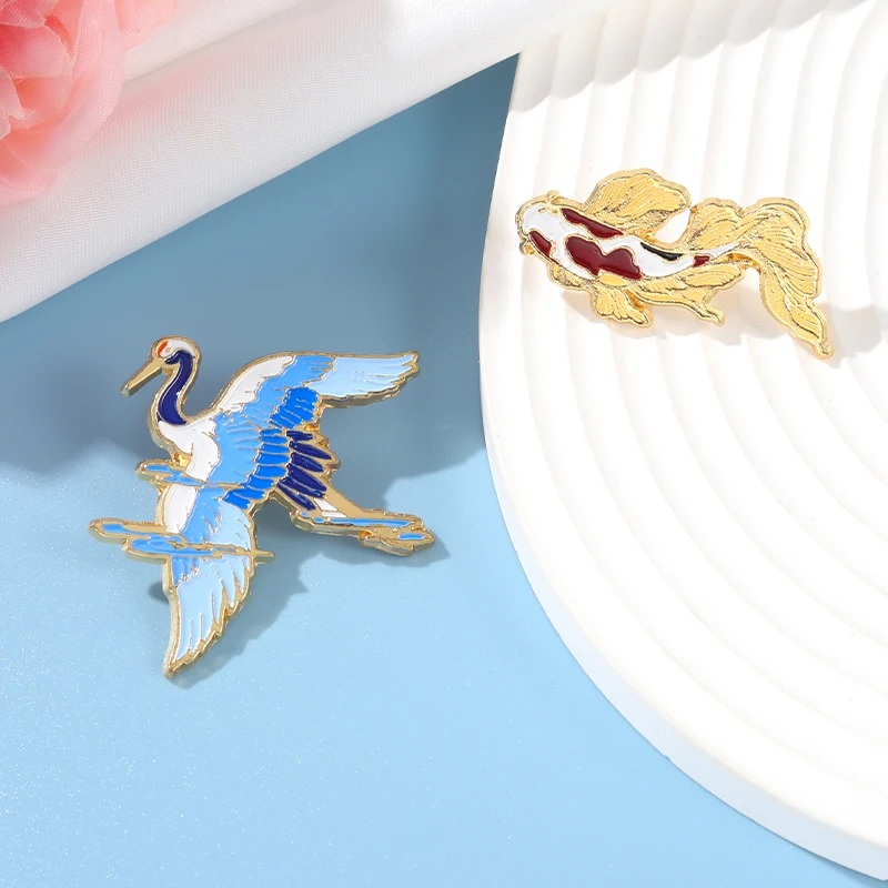 Классическая эмалированная булавка в национальном стиле, значок на лацкан Lucky Koi Crane, ювелирные изделия на лацкан, хороший подарок, фотобулавка, оптовая продажа на заказ