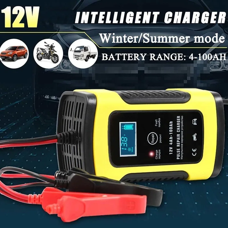 Зарядное устройство для аккумулятора авто, 12 В 6А автоматическое автомобильное зарядное устройство для ремонта импульсов, свинцовый аккумулятор, цифровой ЖК-дисплей
