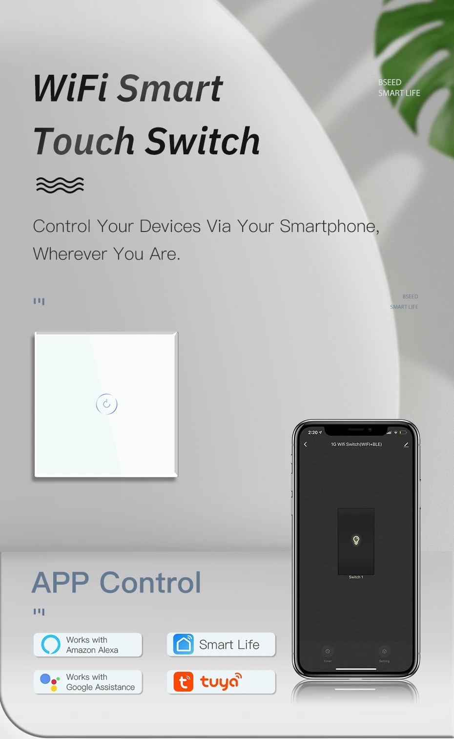 Настенный выключатель BSEED Tuya Alexa с Wi-Fi, умный сенсорный выключатель с 123 клавишами, дистанционное управление, 10 А, для Google Home