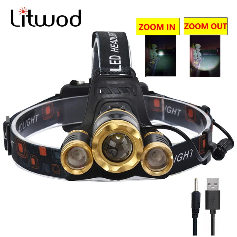 Мощный светодиодный налобный фонарь с зумом, перезаряжаемый налобны...