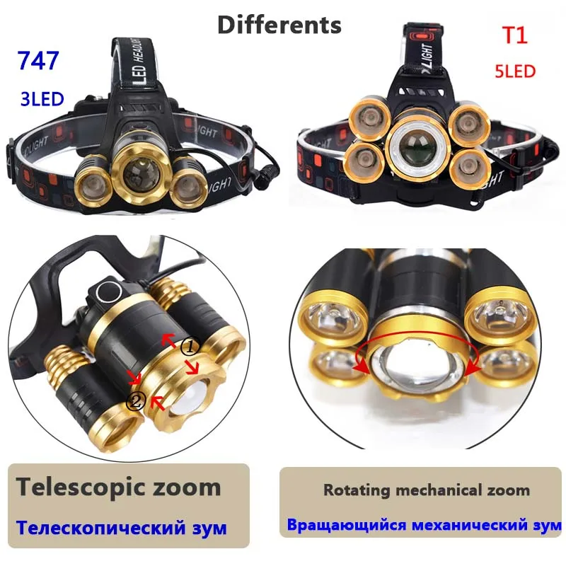 Масштабируемый светодиодный налобный фонарь 747-TJ3D Налобный фонар...