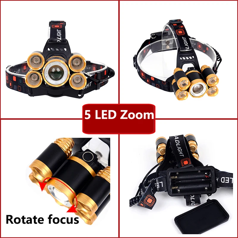 Перезаряжаемый налобный фонарь с 5 светодиодами, налобсветильник фо...