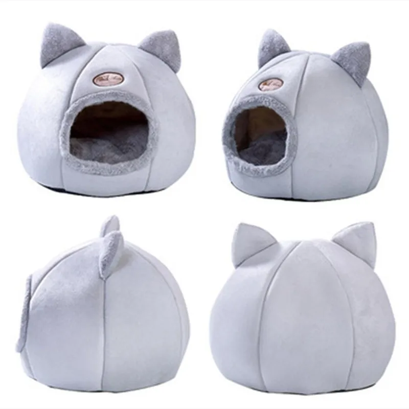 Съемный кошачий домик, зимняя теплая кровать для кошек, набитая полипропиленовым хлопком, для домашних животных, кровати и коврики с нескользящей подошвой