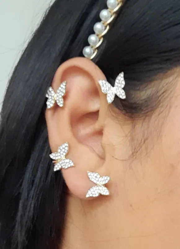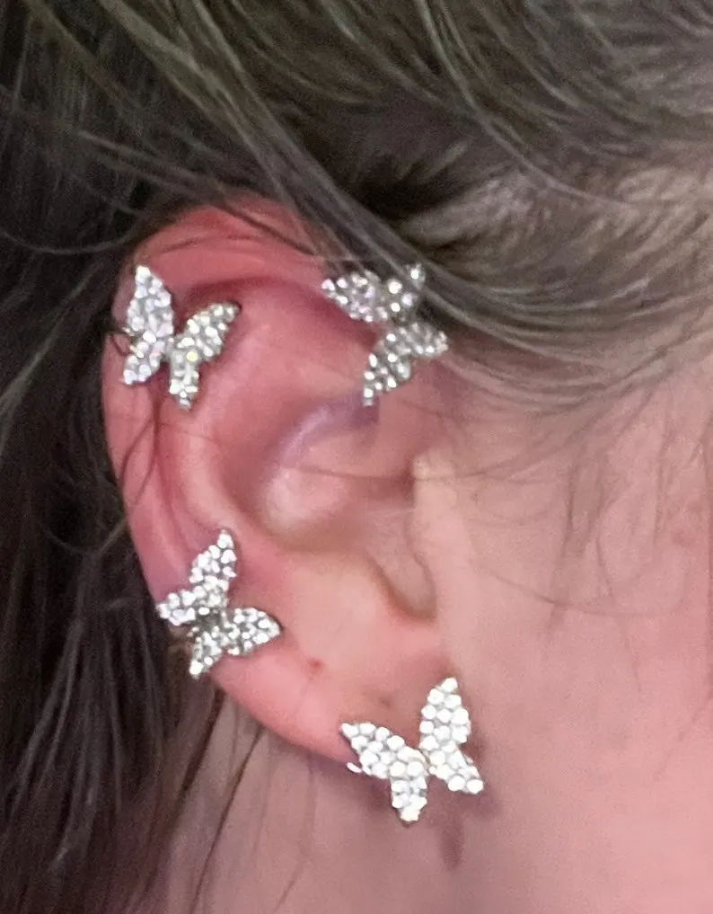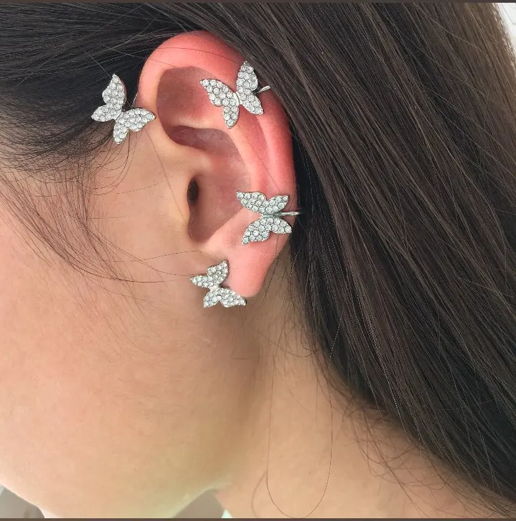 Посеребренные металлические клипсы-бабочки с кристаллами для женщин, сверкающие циркониевые клипсы для ушей, серьги, свадебные ювелирные изделия для девочек, подарки