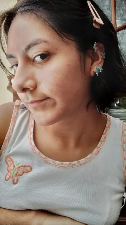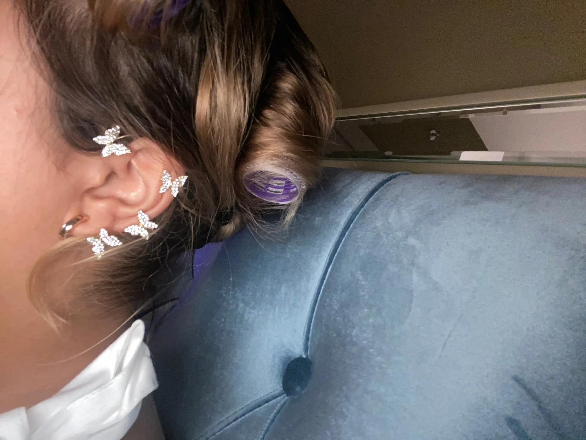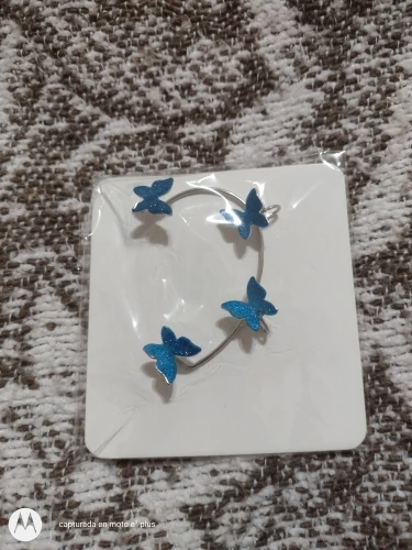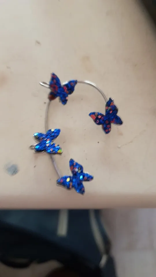 пришло очень быстро, на мое ухо ещё не приловчилась надевать, на металле наклеены наклейки из блёсток