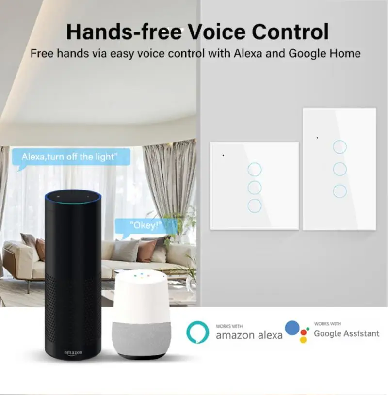 2. Совместимость с Alexa и Google home позволяет свободно управлять голосом; Удаленное управление устройствами на вашем смартфоне через приложение smart Life/Tuya, где бы вы ни находились.