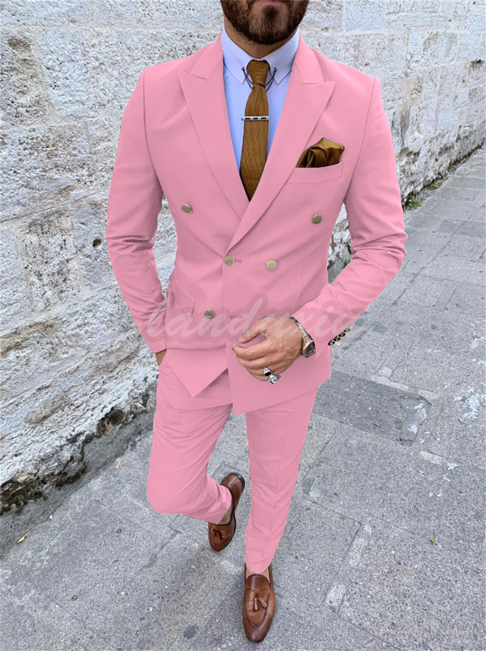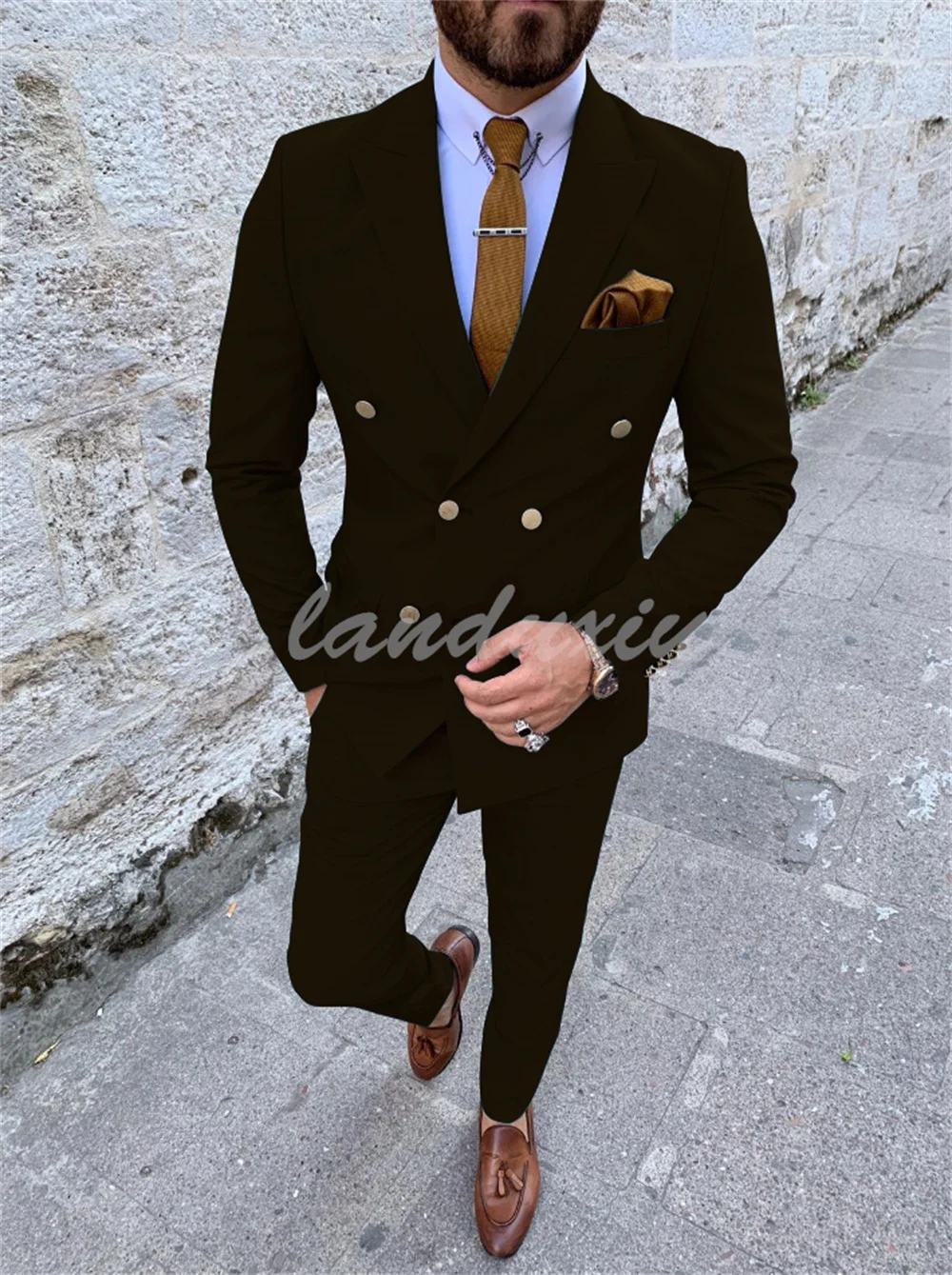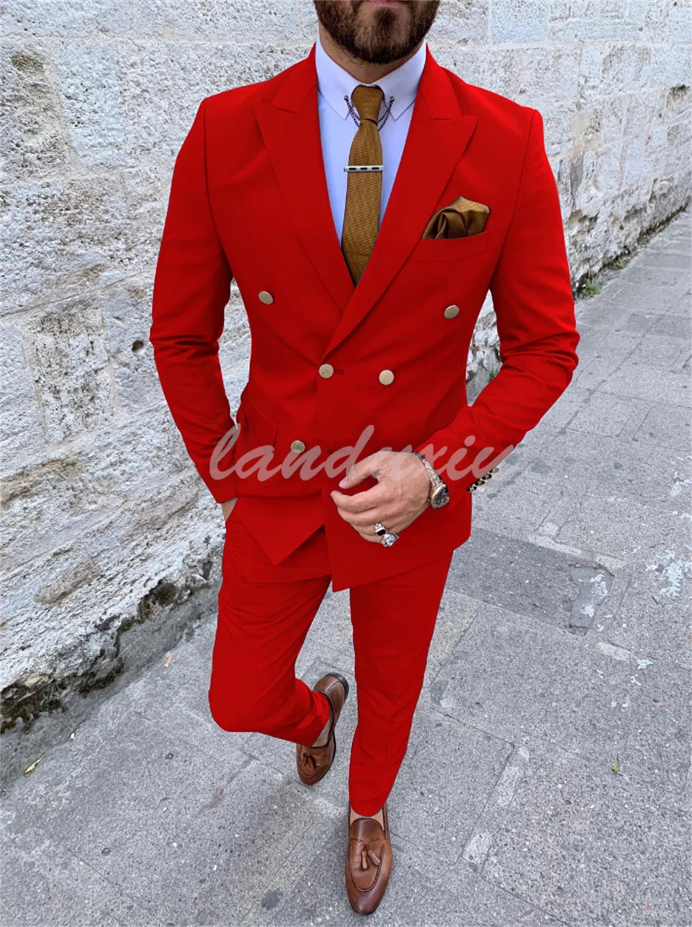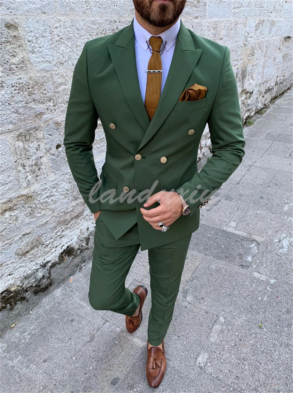 Модный двубортный мужской костюм, зеленый костюм из двух предметов, приталенный, для свадьбы Вечерние вечеринки, выпускного вечера, с золотыми пуговицами