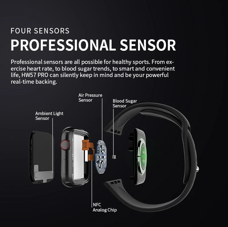Все профессиональные датчики возможны для здоровых видов спорта, от физических упражнений, пульса, трендов сахара в крови, для умной и удобной жизни, HW57PRO может молча держать в уме и быть мощной поддержкой в реальном времени.