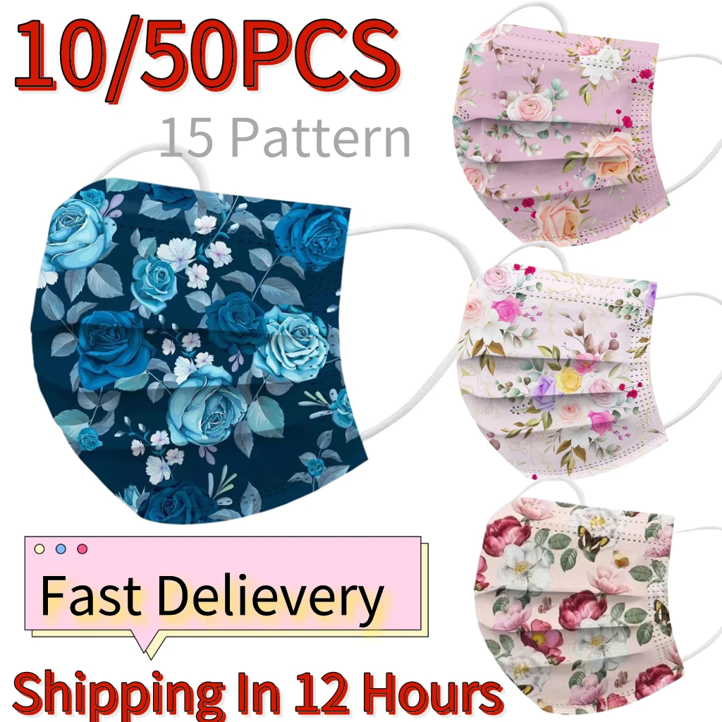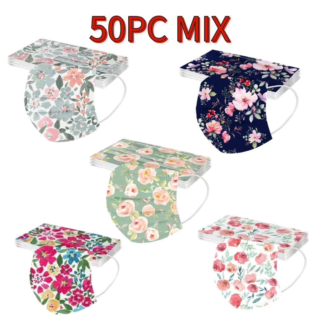 Маска с цветочным узором для мужчин и женщин, 3-слойная дышащая модная одноразовая маска для косплея, для Хэллоуина, Хэллоуина, 30 шт., 50 шт.