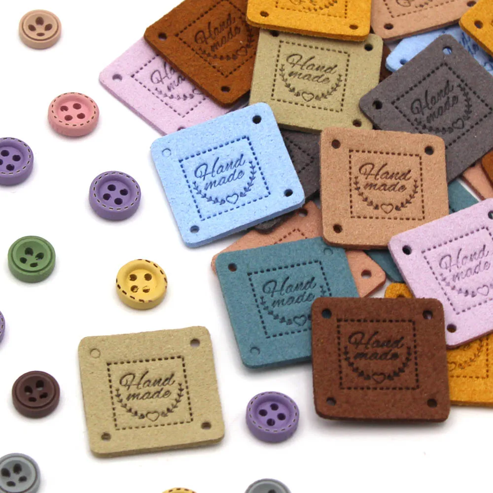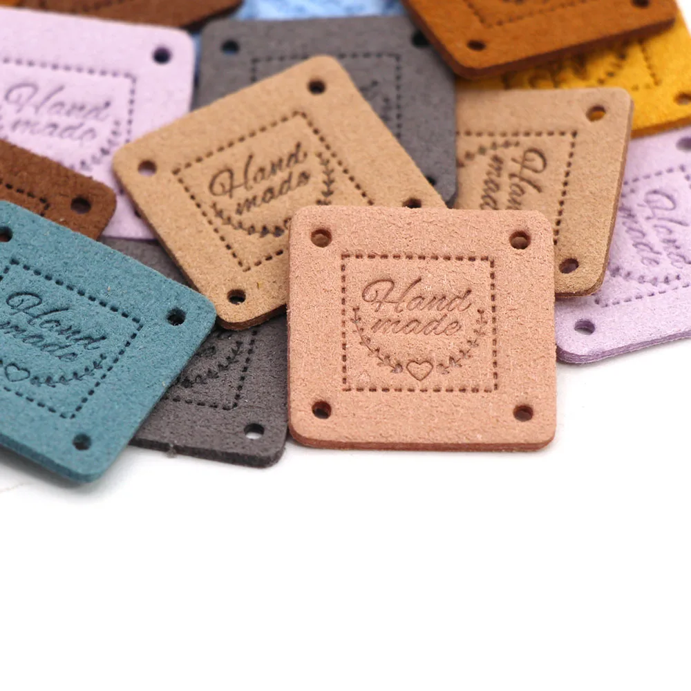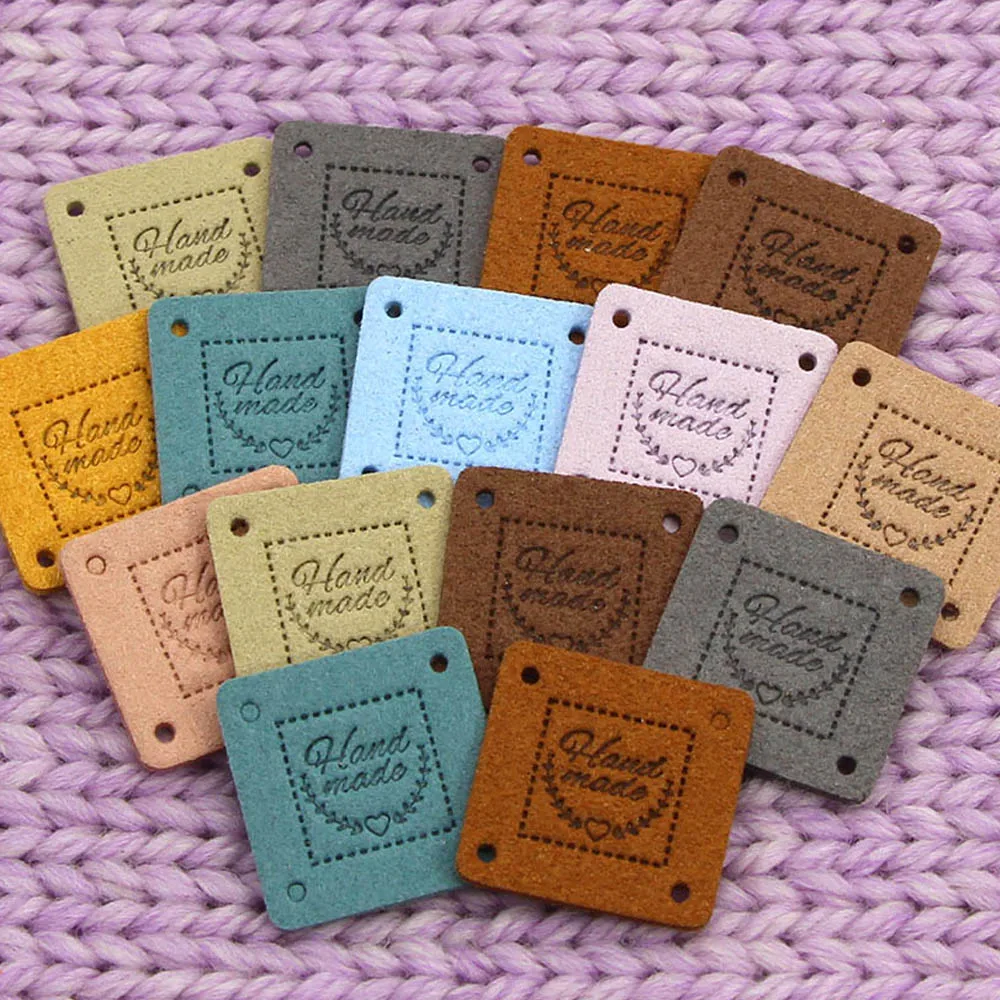 Квадратные бирки для этикеток ручной работы, волоконные кожаные этикетки для одежды, сердце ручной работы с любимой биркой, Швейные аксессуары 20 шт. 25 мм