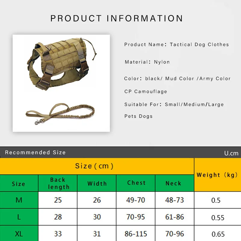 Product NameMilitary Tactical Dog Clothes Pet Harness Vest