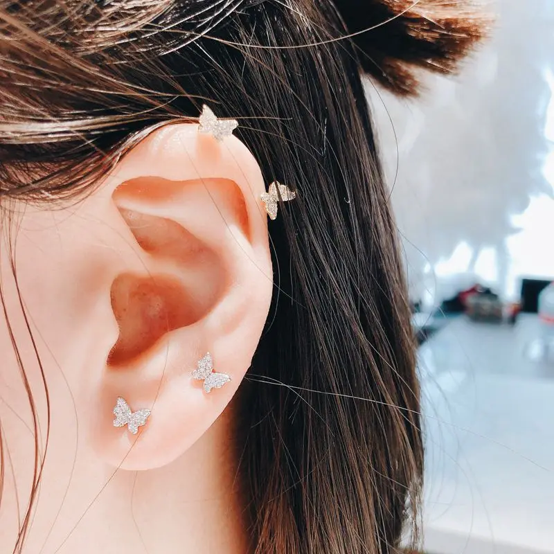 Новые изысканные серьги из серебра S925 пробы с цирконами в виде цветка бабочки, маленькие ювелирные изделия в стиле свежего искусства, характерные женские серьги для дня рождения
