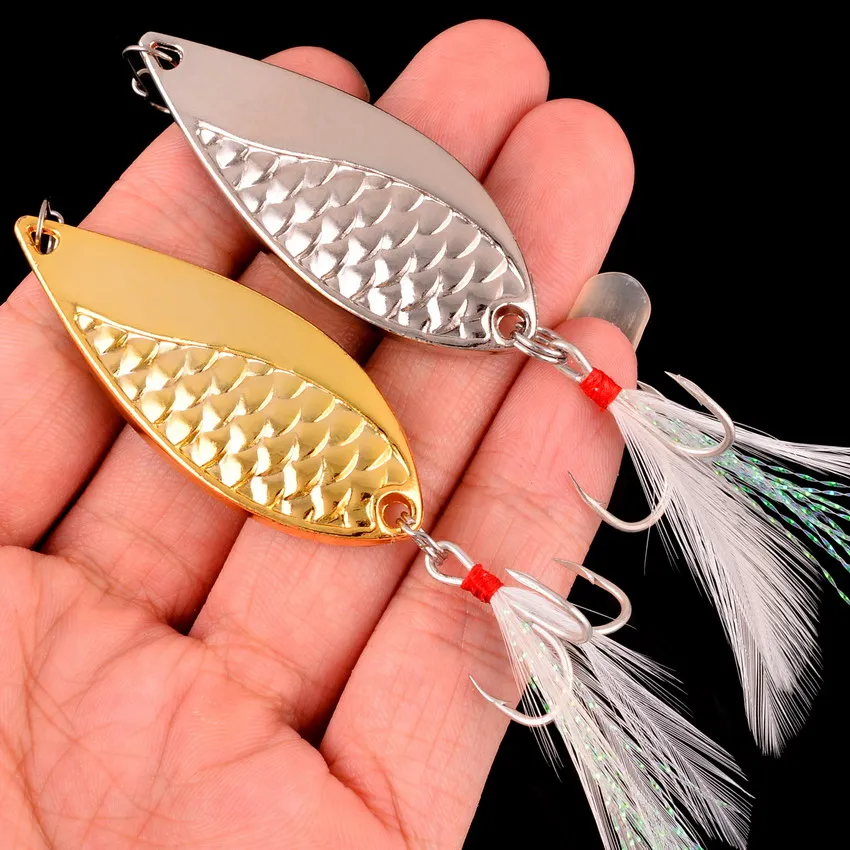 Жесткая приманка-блесна Змея в виде ложки, металлические приманки с блестками и тройным крючком, приманки для рыбной ловли с пером, золотистые, серебристые приманки 2. Приблизительные3. Искусственные приманки7 г10 г1 искусственная приманка, 20 г