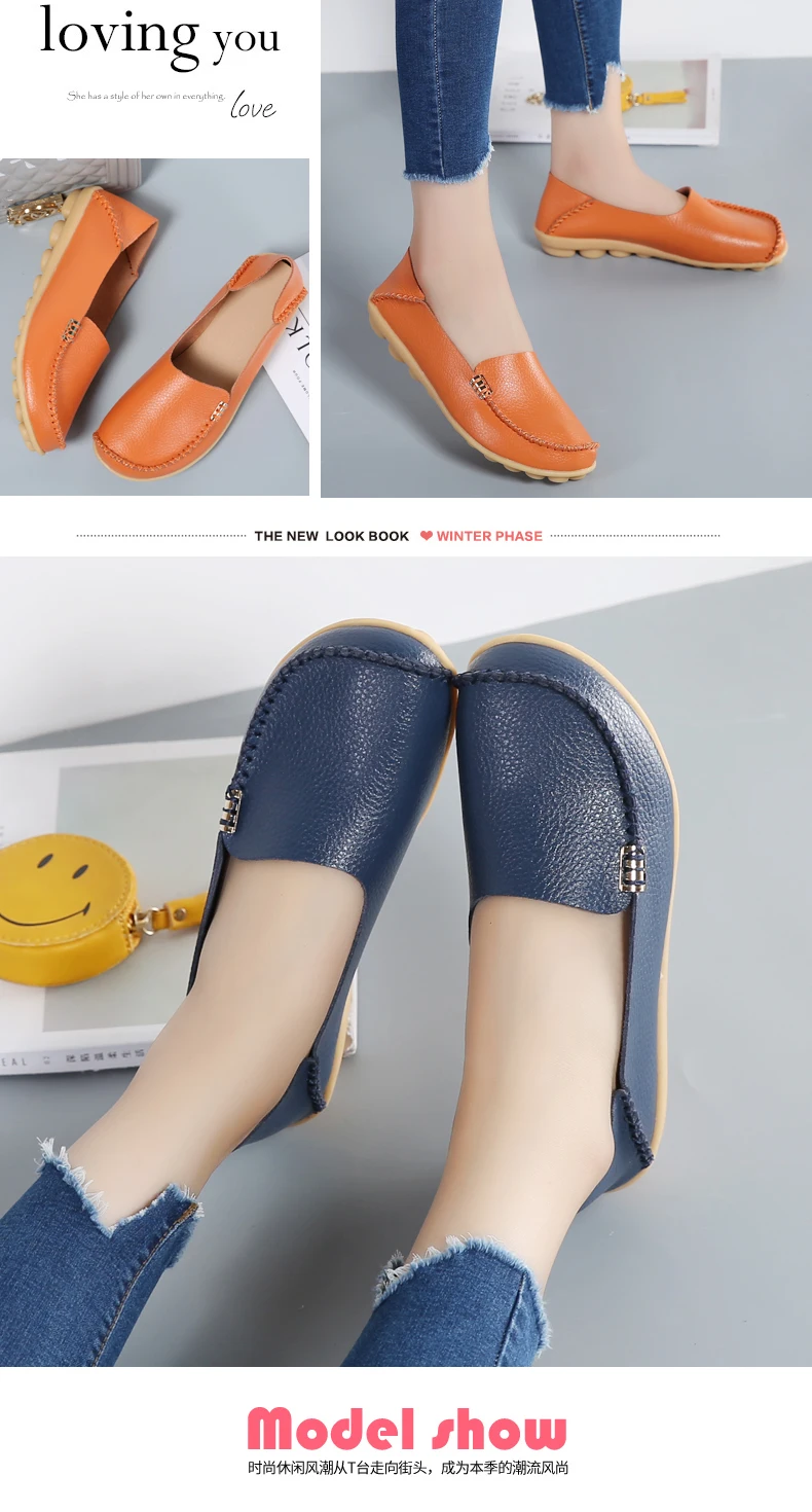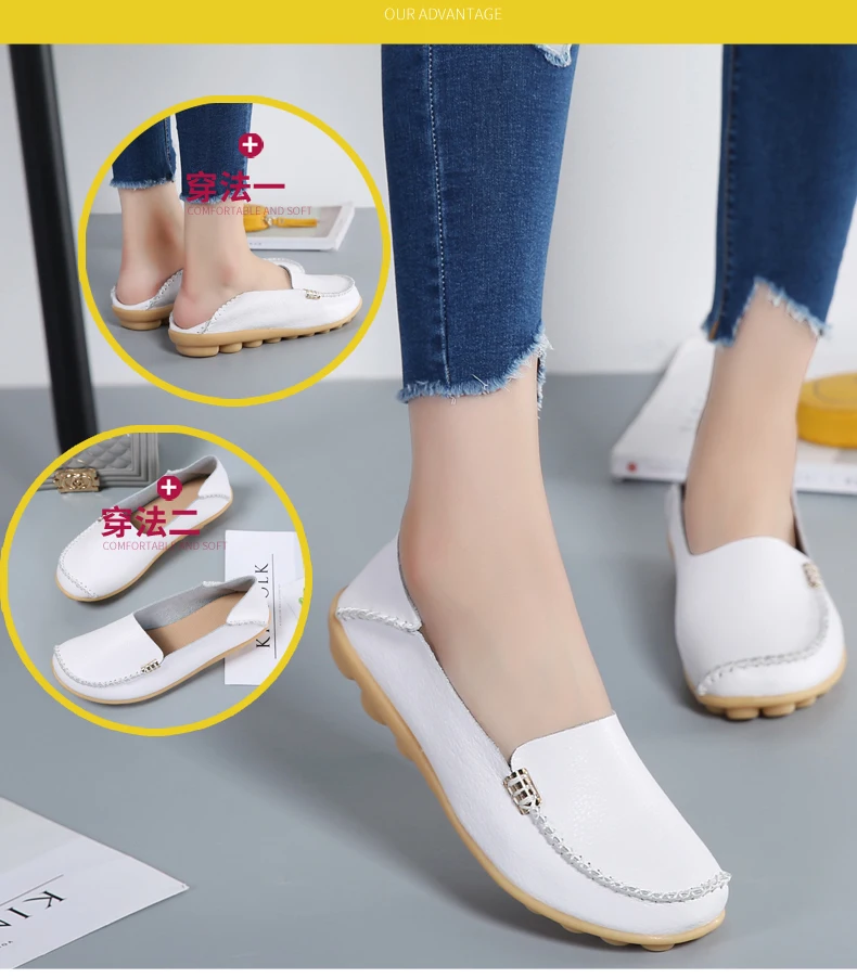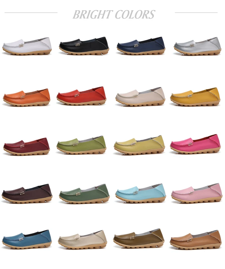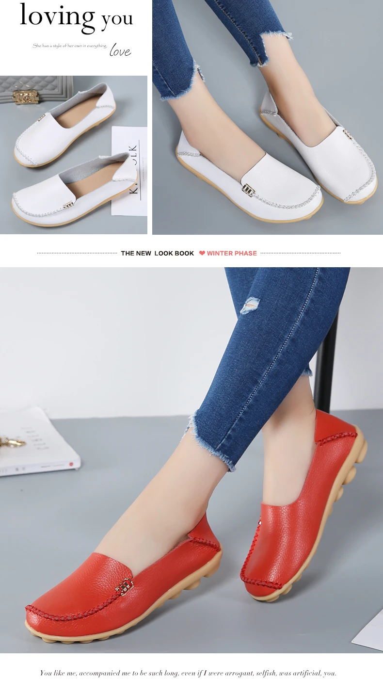 Casual Cow Leather Shoes WomenSewing Women Shoes, Walking Women Loafers, Solid Ladies Sneakers