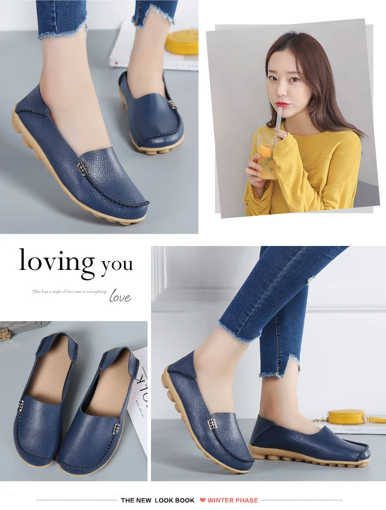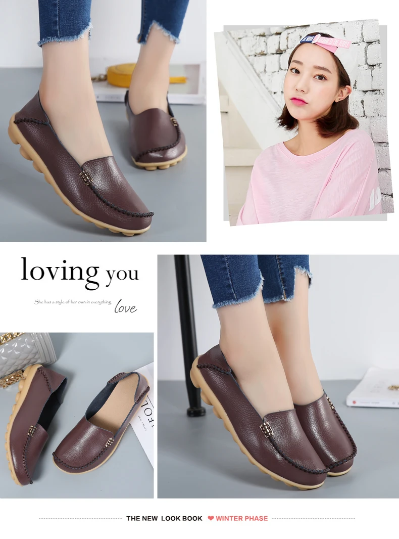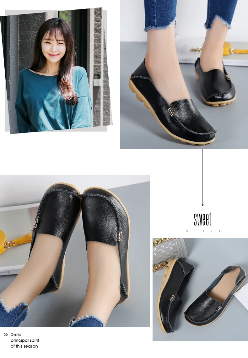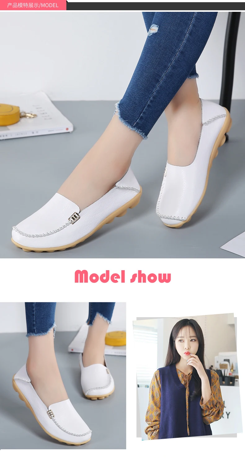 Casual Cow Leather Shoes WomenSewing Women Shoes, Walking Women Loafers, Solid Ladies Sneakers