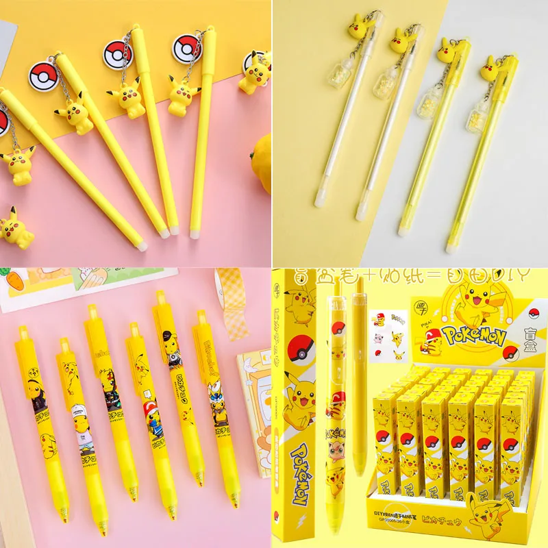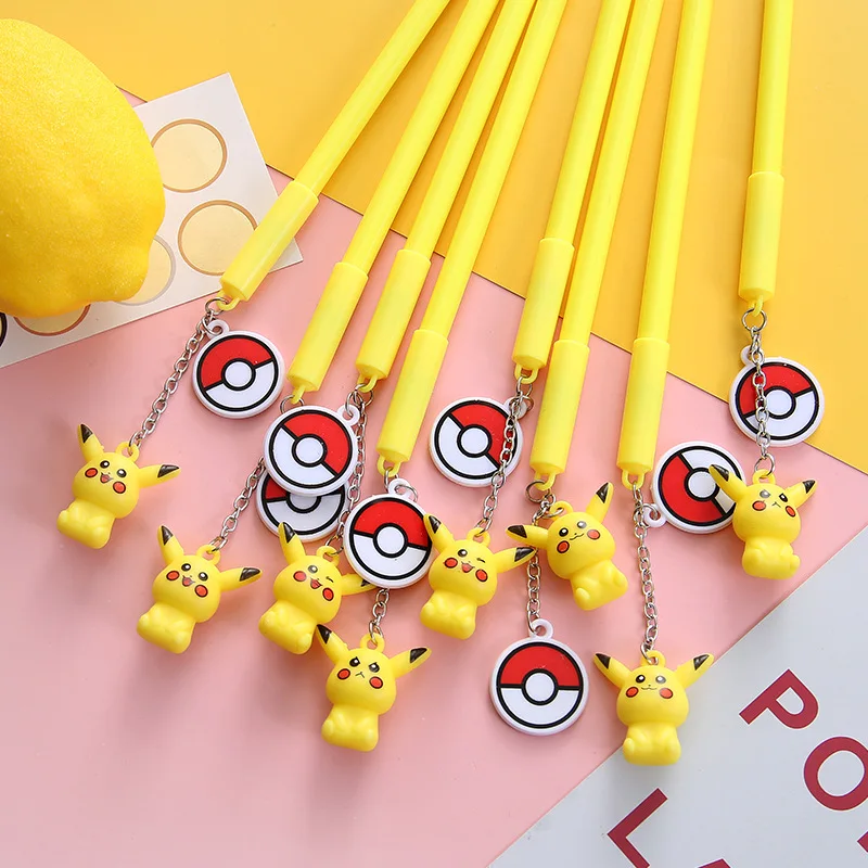Ручка-пресс с покемоном Go, 0,5 мм, черная карбоновая ручка Пикачу, школьные принадлежности для мальчиков и девочек, канцелярские принадлежности, аниме-игрушки, детские подарки