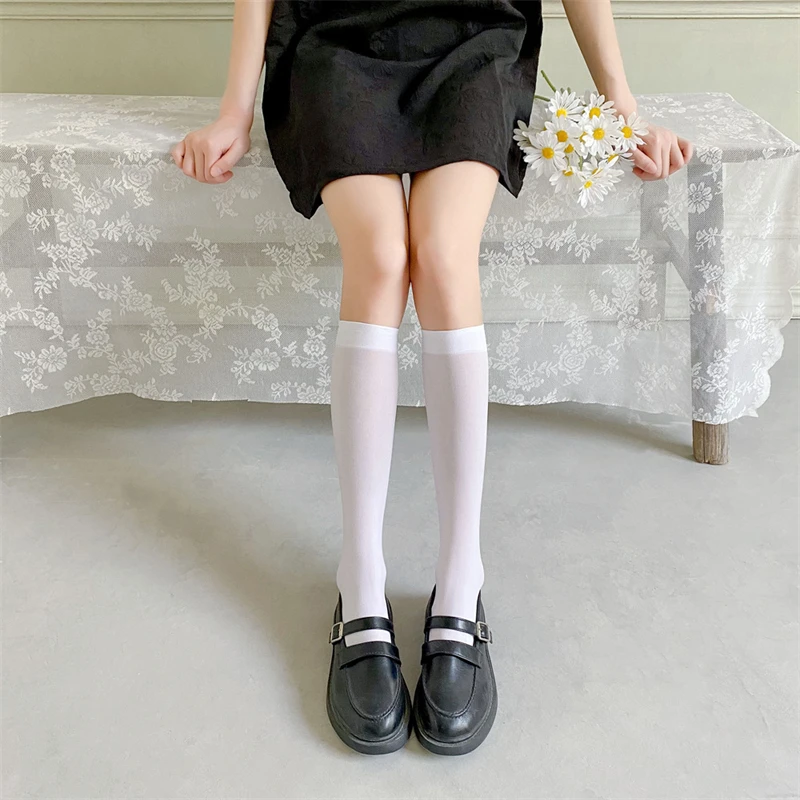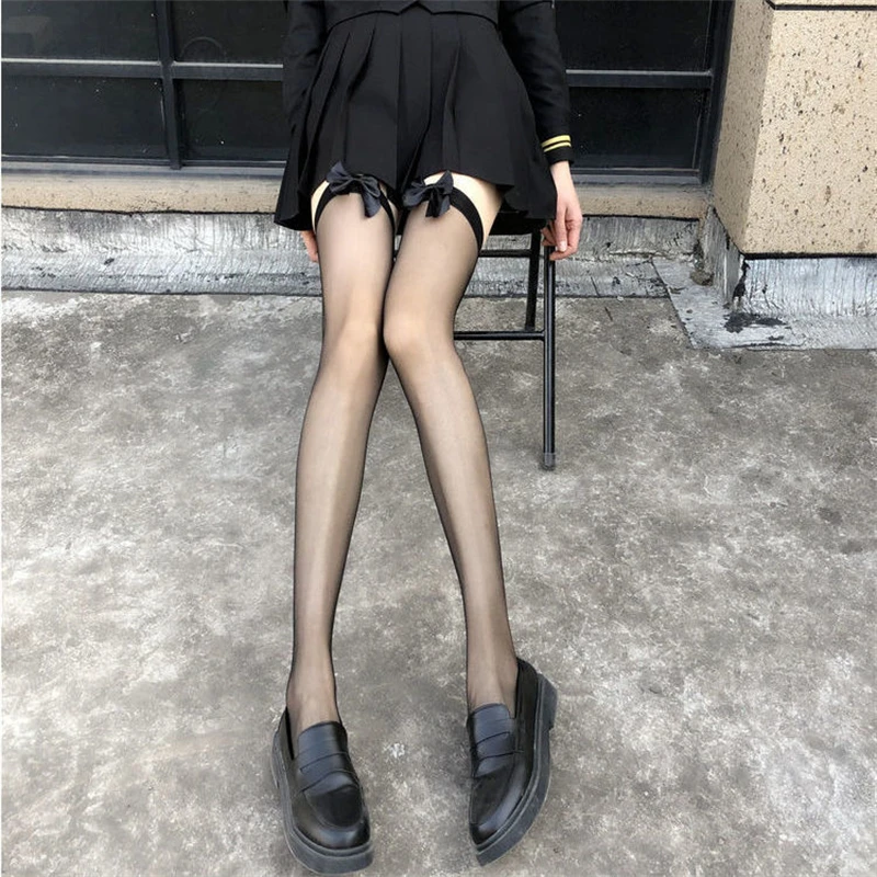 Чулки женские тонкие до колена с бантом, милые черные шелковые до б...