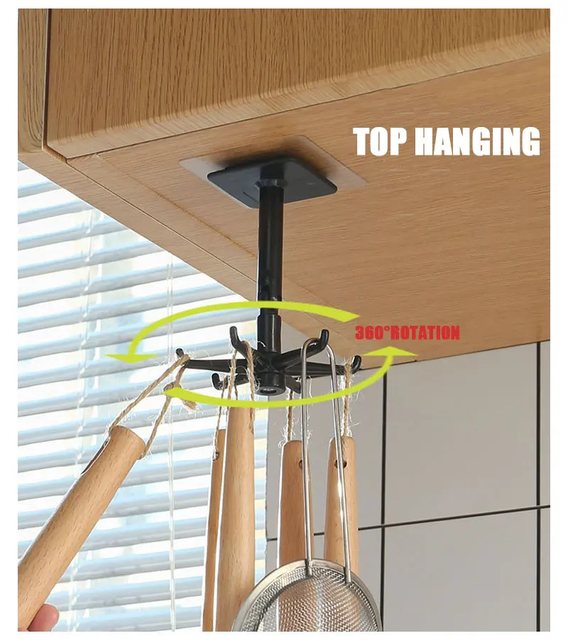 Кухонный крючок, многофункциональные крючки, вращающаяся на 360 градусов стойка для органайзера и хранения, вешалка для ложек, аксессуары