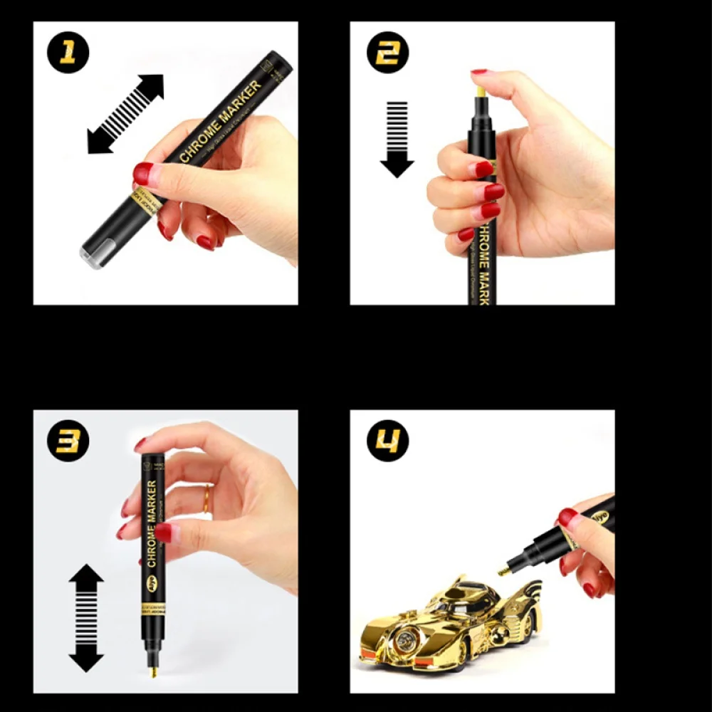 2. Он наполнен высокопигментированными особыми хромированными чернилами, которые могут показать непревзойденный зеркальный эффект практически на всех гладких поверхностях (таких как пластик, стекло, дерево, камень, плитка и резина).