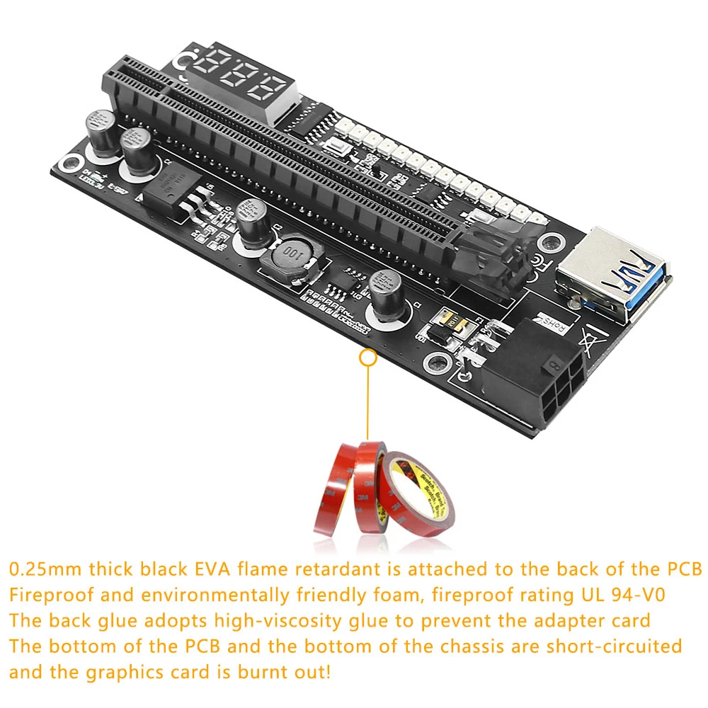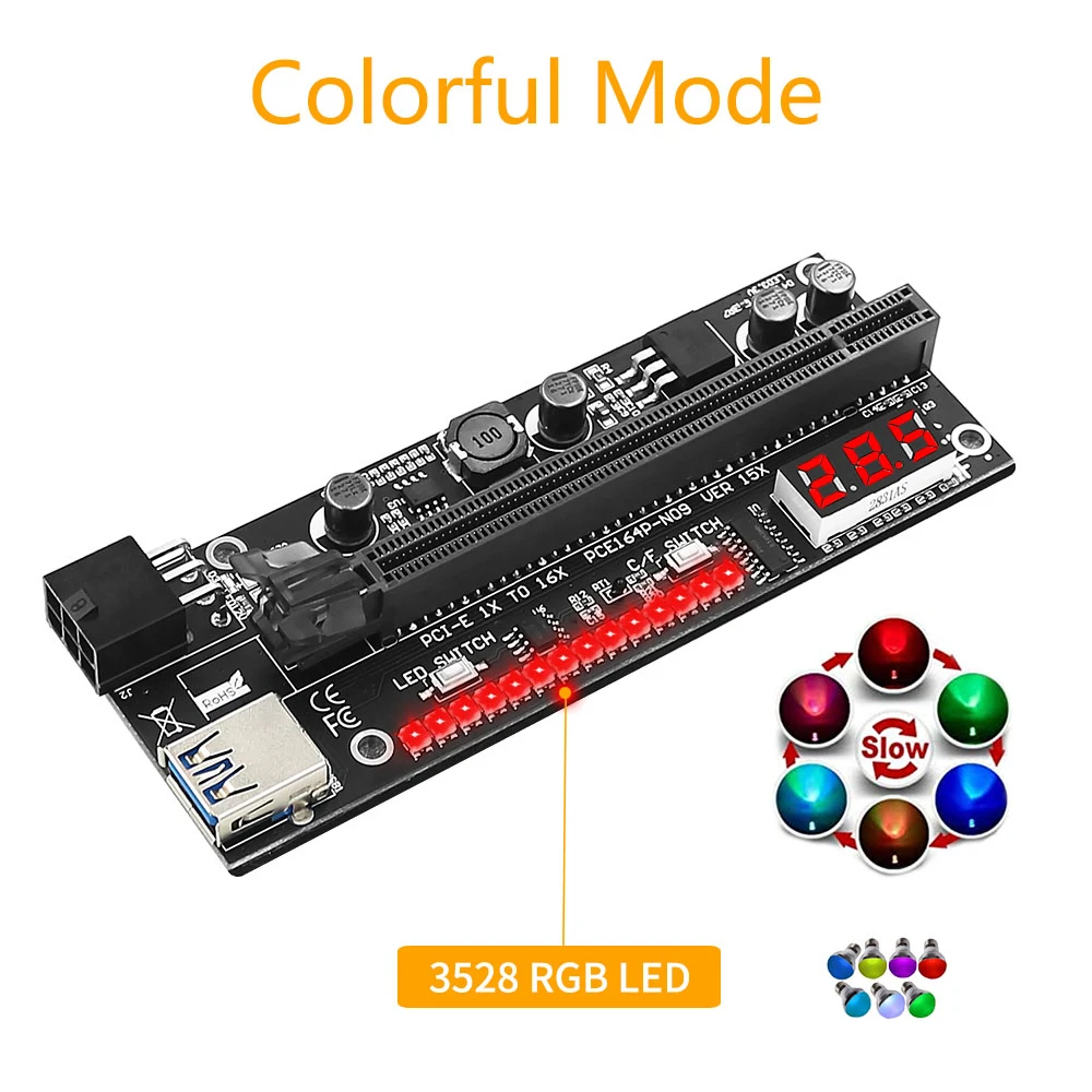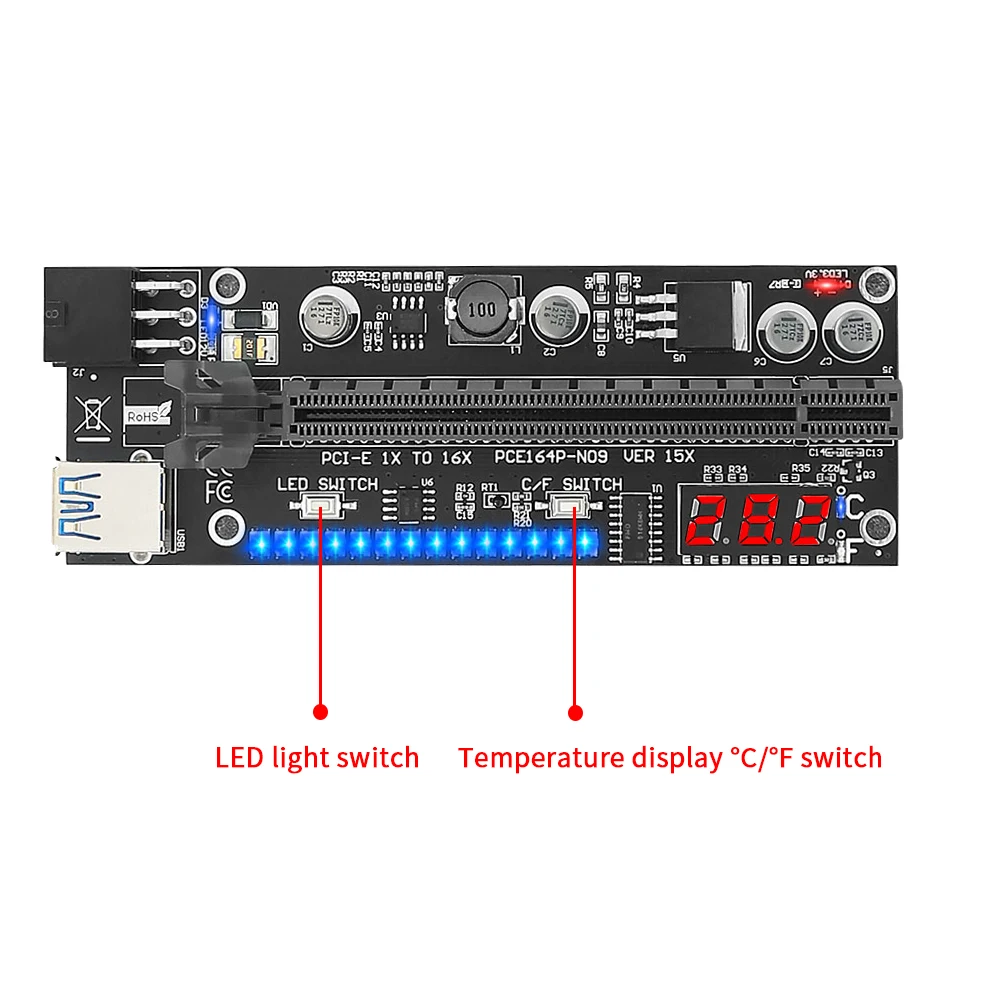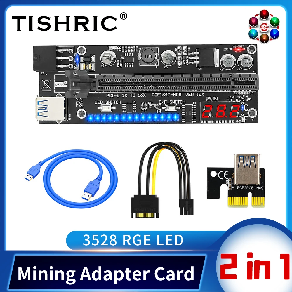 TISHRIC PCIE Riser VER15X Riser для видеокарты с дисплеем температуры RGB светильник USB3.0 Riser Cable Pci-e 16x Riser для BTC Mining