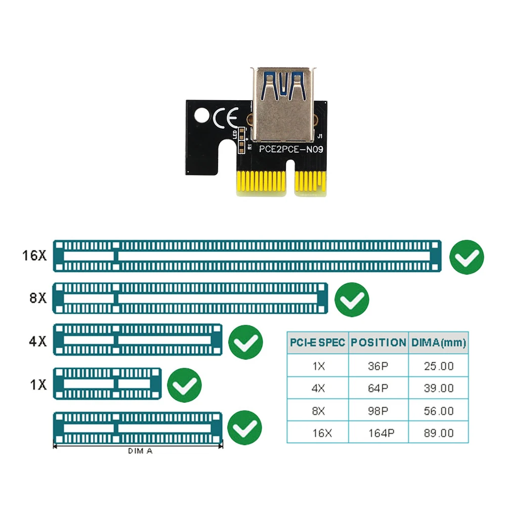 Райзер-карта PCI-E TISHRIC 1-10 шт., VER15X PCI Express 1X до 16X, ...
