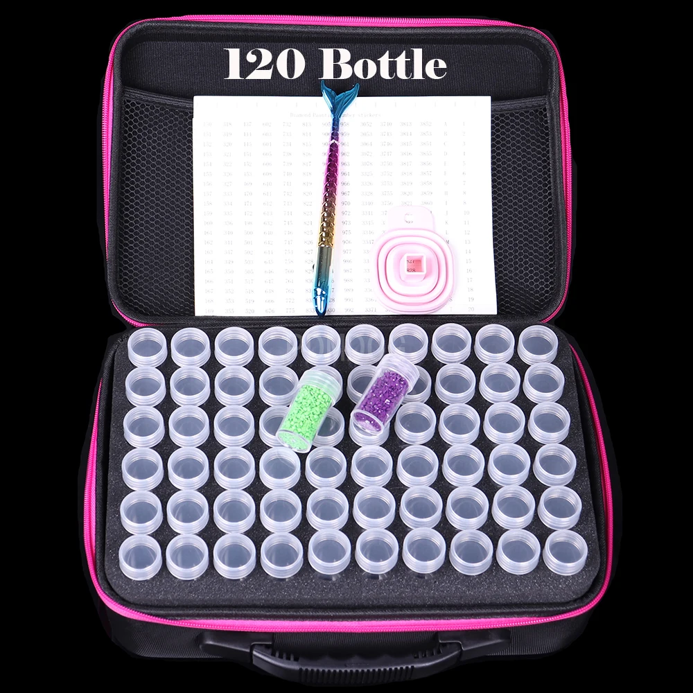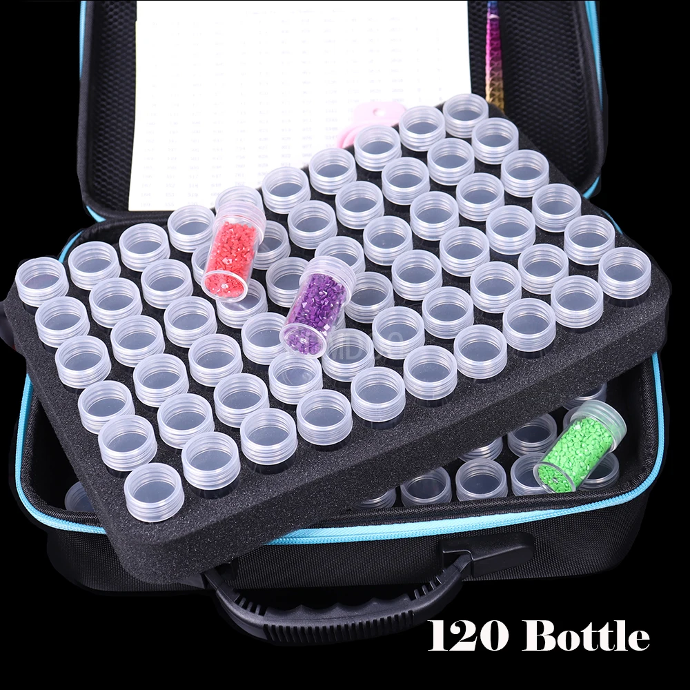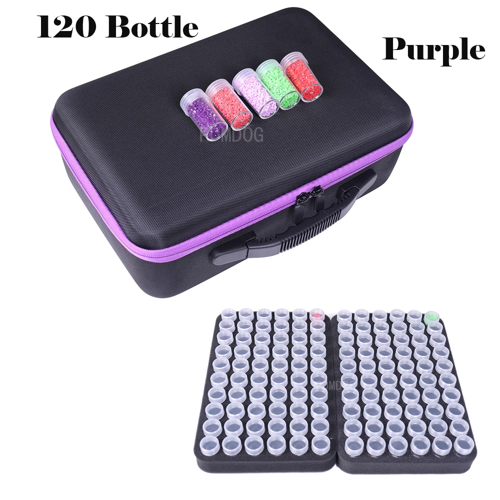 Новинка 2021, 120 бутылок для алмазной живописи, аксессуары, контейнер, сумка для хранения, фиолетовый, розовый, синий, чемодан, коробка для алмазной живописи воронка