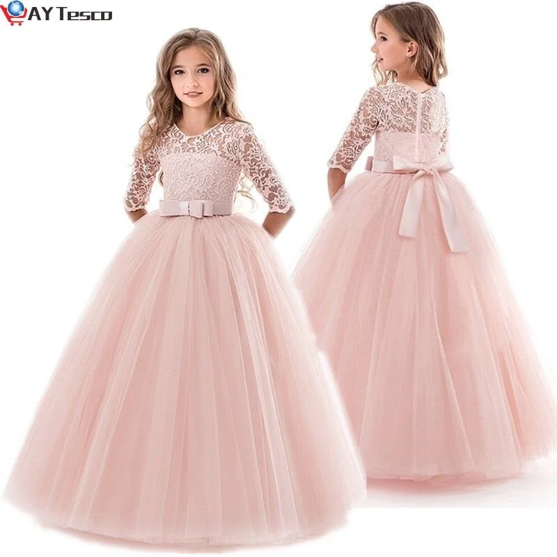 Платье для девочек-подростков, летняя детская одежда, вечерние элегантные длинные тюлевые платья принцессы для маленьких девочек, детские кружевные платья для свадебной церемонии