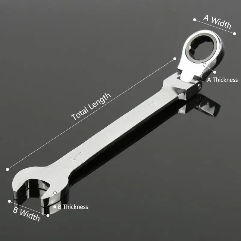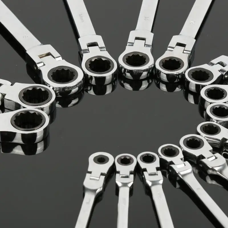 Гаечные ключи с гибкой головкой изготовлены из высококачественной хромированной ванадиевой стали с зеркальной полировкой.