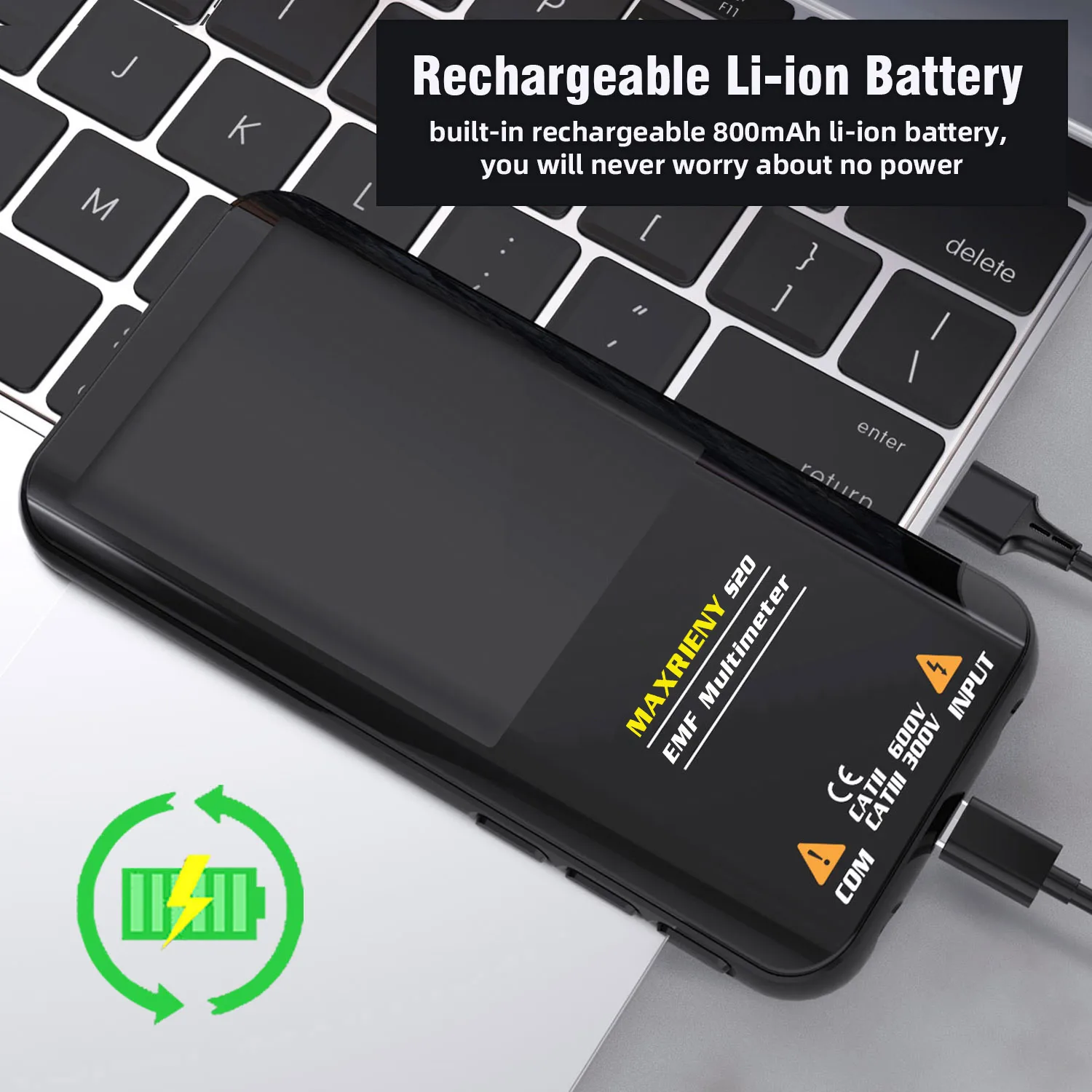 S20 продукты относятся к последнему поколению смарт-мультиметра бренда MAXRIENY! 3,5-дюймовый большой дисплей дизайн оставляет замечательный опыт пользователей для покупателей; Простой в использовании/костюм с одной пуговицей, чтобы переключить дизайн хорошо признано покупателями; ультратонкий корпус очень портативный. Изысканный внешний вид/надежная производительность/Полные функции, могут удовлетворить потребности различных групп людей и очень подходят в качестве подарка. Встроенный литиевый аккумулятор 800 мА (поддерживает перезаряжаемое использование)