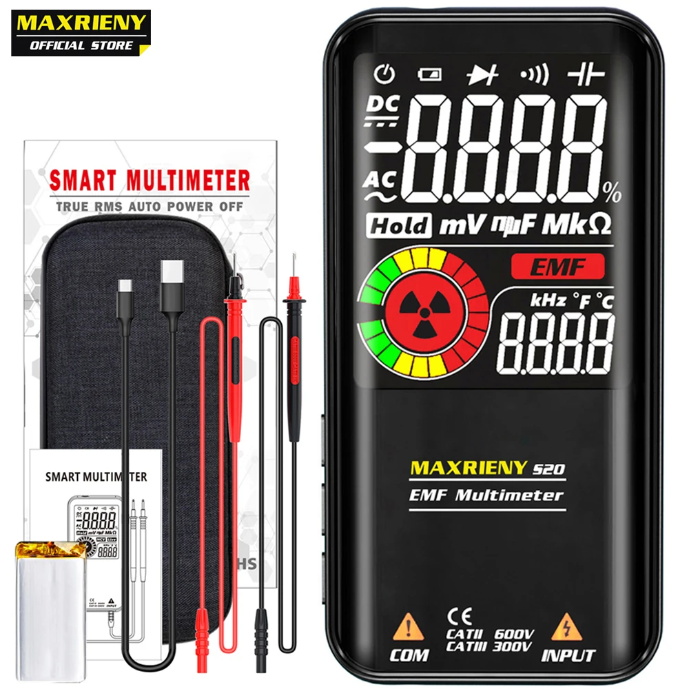 Цифровой мультиметр MAXRIENY EMF 9999 EBTN, интеллектуальный конденсатор напряжения постоянного и переменного тока, Ом, диод, NCV, тестер Гц, цифровой ампервольтметр