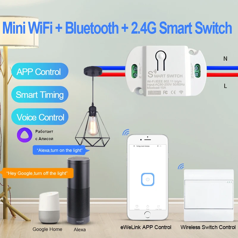 Мини WiFi Bluetooth 2,4G Smart Switch