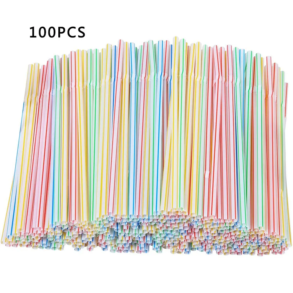 100 шт.компл. одноразовые цветные пластиковые соломинки, удлиняемые и гибкие соломинки для сока, молока, чая, трубочки, гибкие соломинки