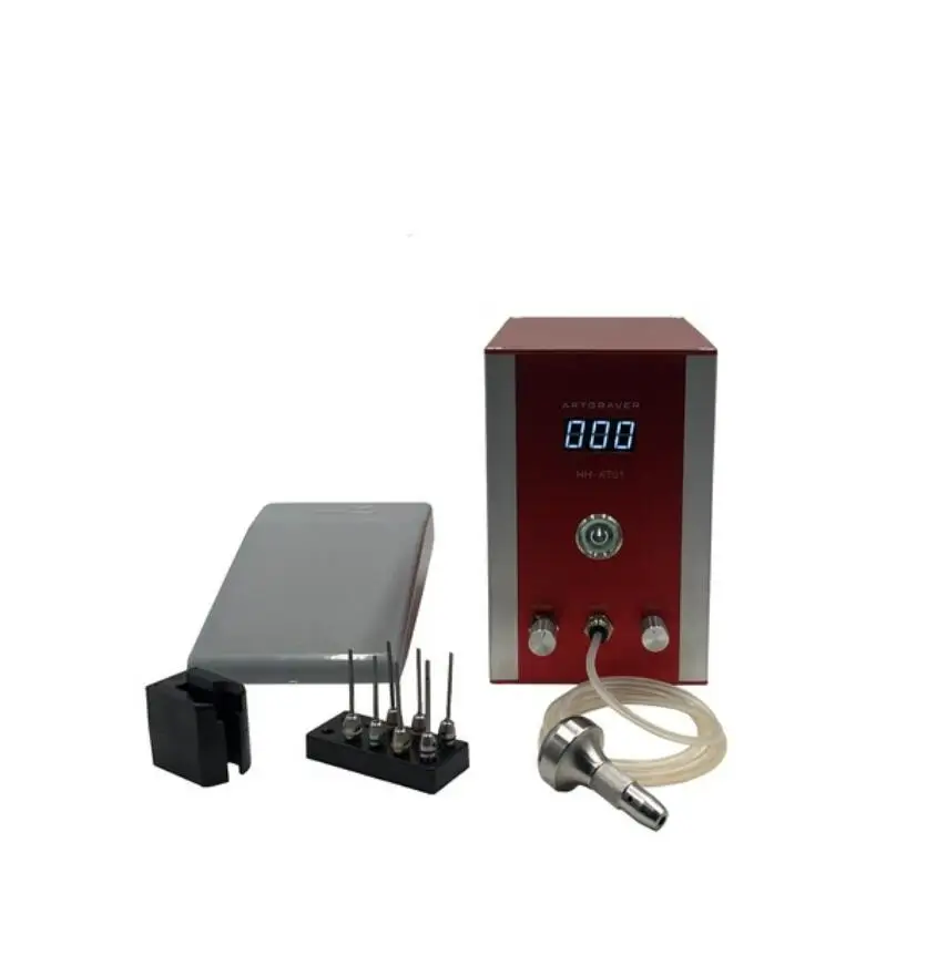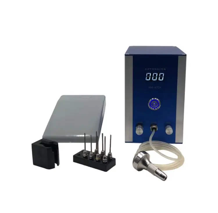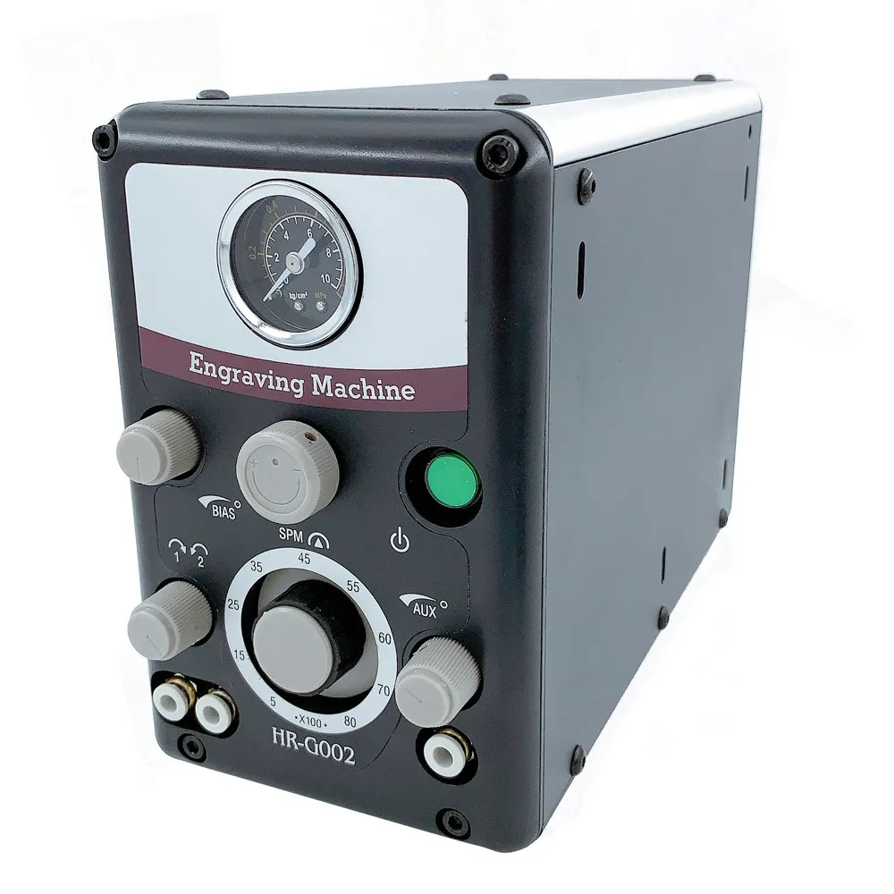 Гравировальная машина HH-G01 имеет 0-8000 штрихов в минуту, клапан регулировки смещения дроссельной заслонки для пошива отклика дроссельной заслонки и двухступенчатый точный воздушный регулятор. Усовершенствованная Эргономика включает в себя регулировку переднего давления воздуха, быстрое подключение воздушных соединений, заднее крепление дроссельной заслонки и Усовершенствованный Импульсный блок клапана, который работает практически без шума или вибрации.
