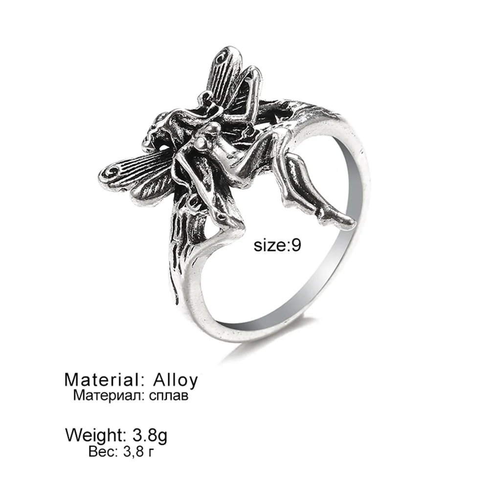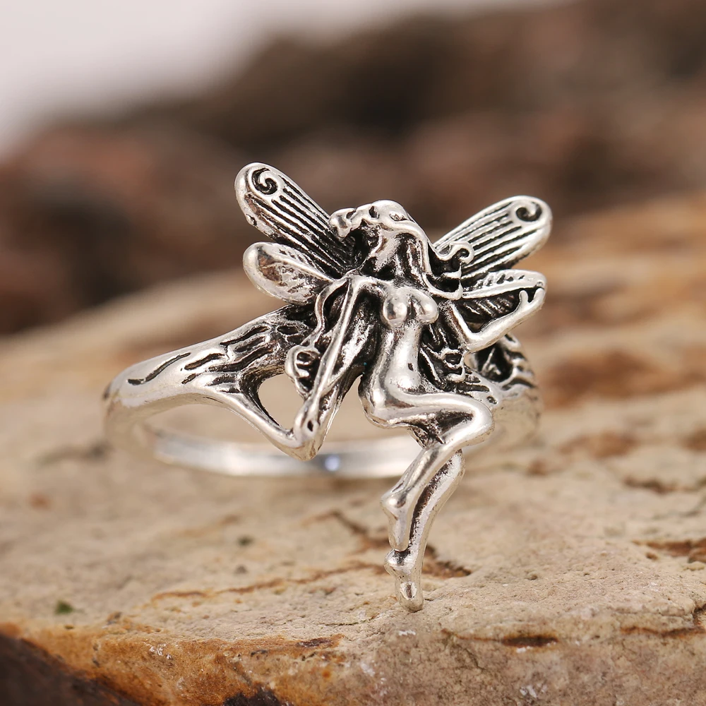 Винтажное посеребренное кольцо с крыльями ангела для женщин, готиче...