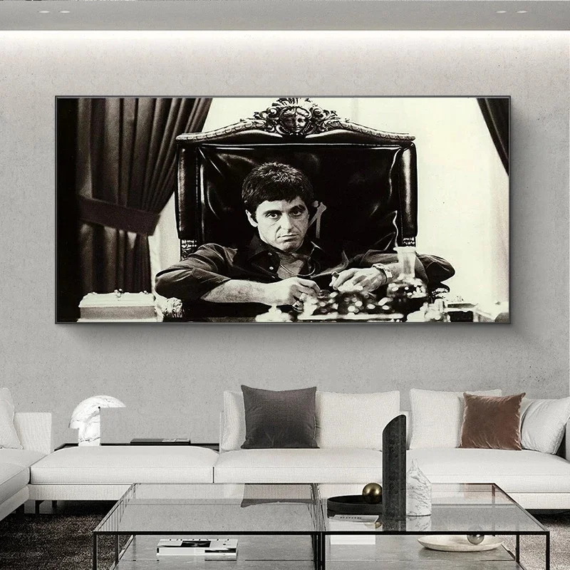 Фильм Лицо со шрамом плакаты и принты, Картина на холсте Тони Монтана, черно-белый персонаж, картина на стену, картина для гостиной, домашний декор