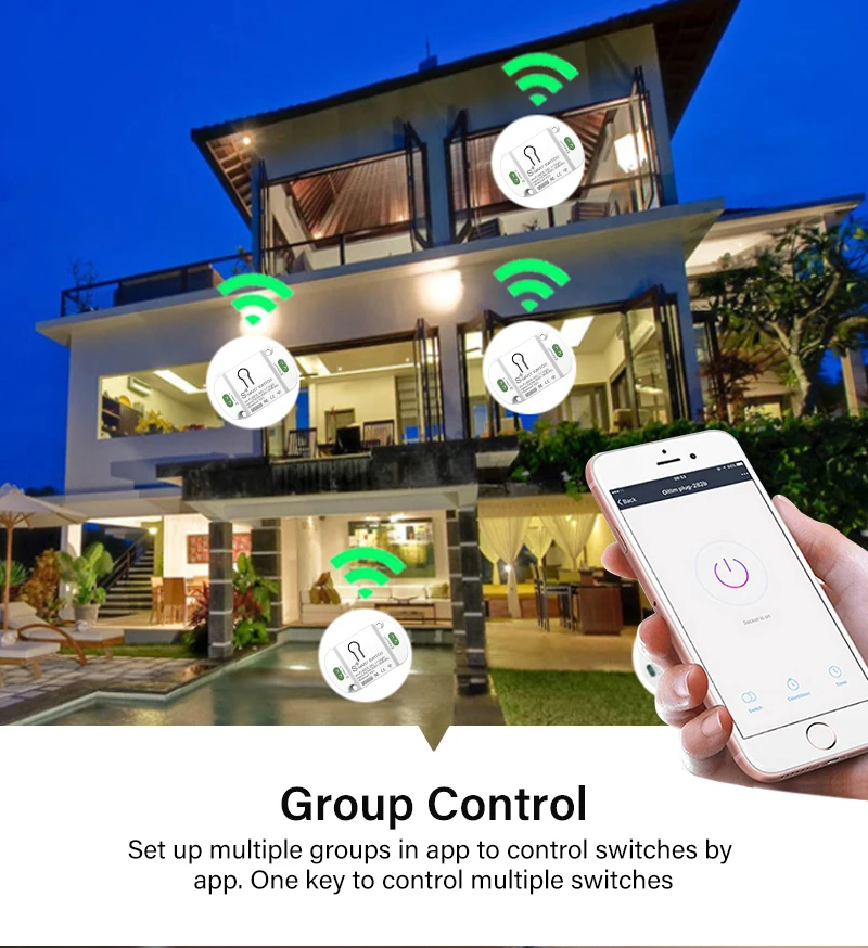 Настройте несколько групп в приложении для управления переключателями с помощью приложения. Один ключ для управления несколькими переключателями.