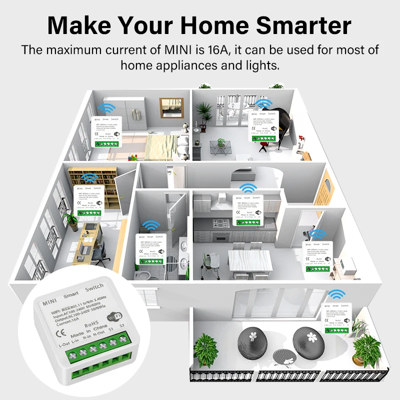 Умный мини-выключатель с поддержкой Wi-Fi, 16 А