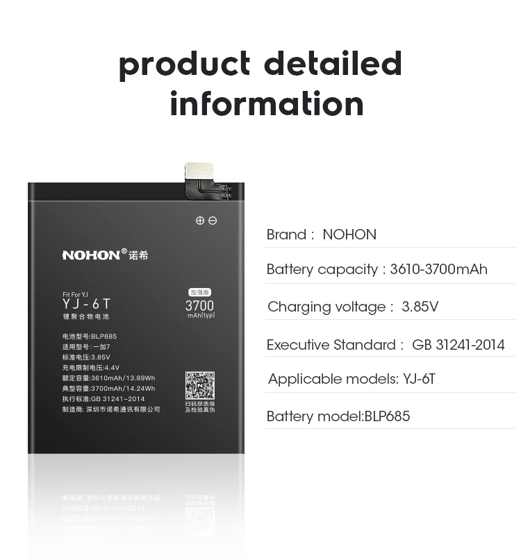 Nohon МодельBLP685 Lithium Polymer Battery For One Plus 1+ 6T 7Pro 6 5 5T
