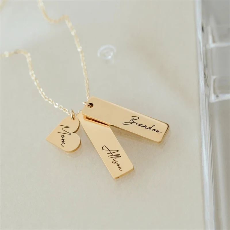 Ожерелье женское с гравировкой, индивидуальное ювелирное изделие с квадратными стержнями в форме сердца, слова, сувенир на заказ, хороший подарок на день Святого Валентина