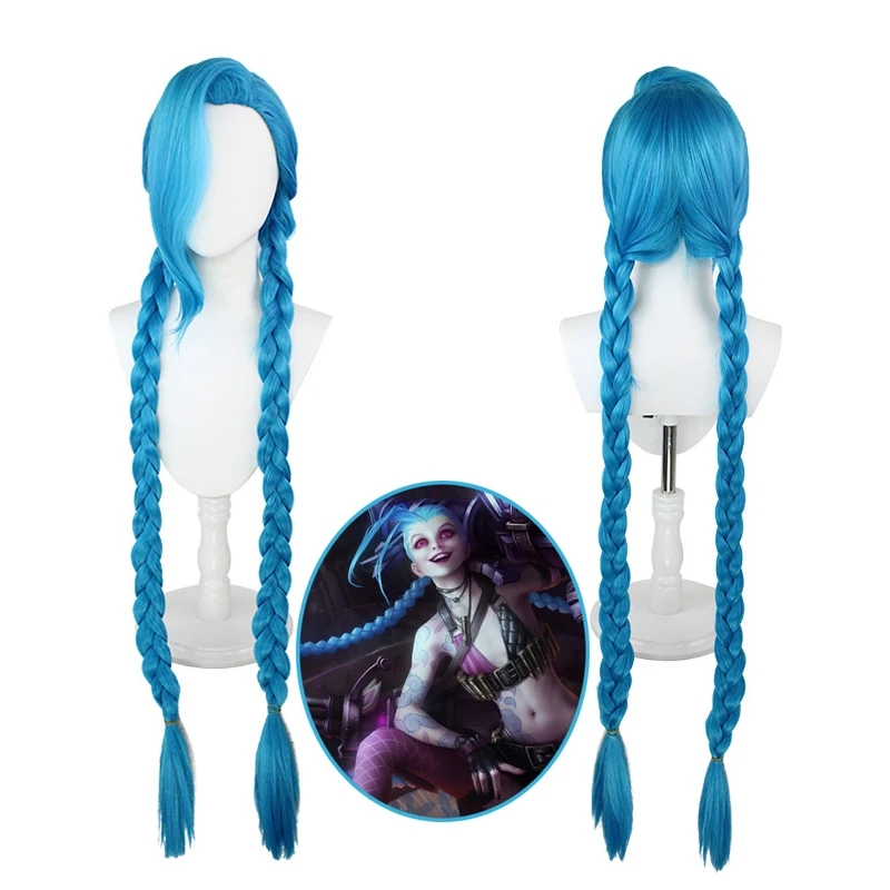 Jinx синий длинный косички парик косплей костюм жаропрочные синтетические волосы женские карнавальные вечерние парики