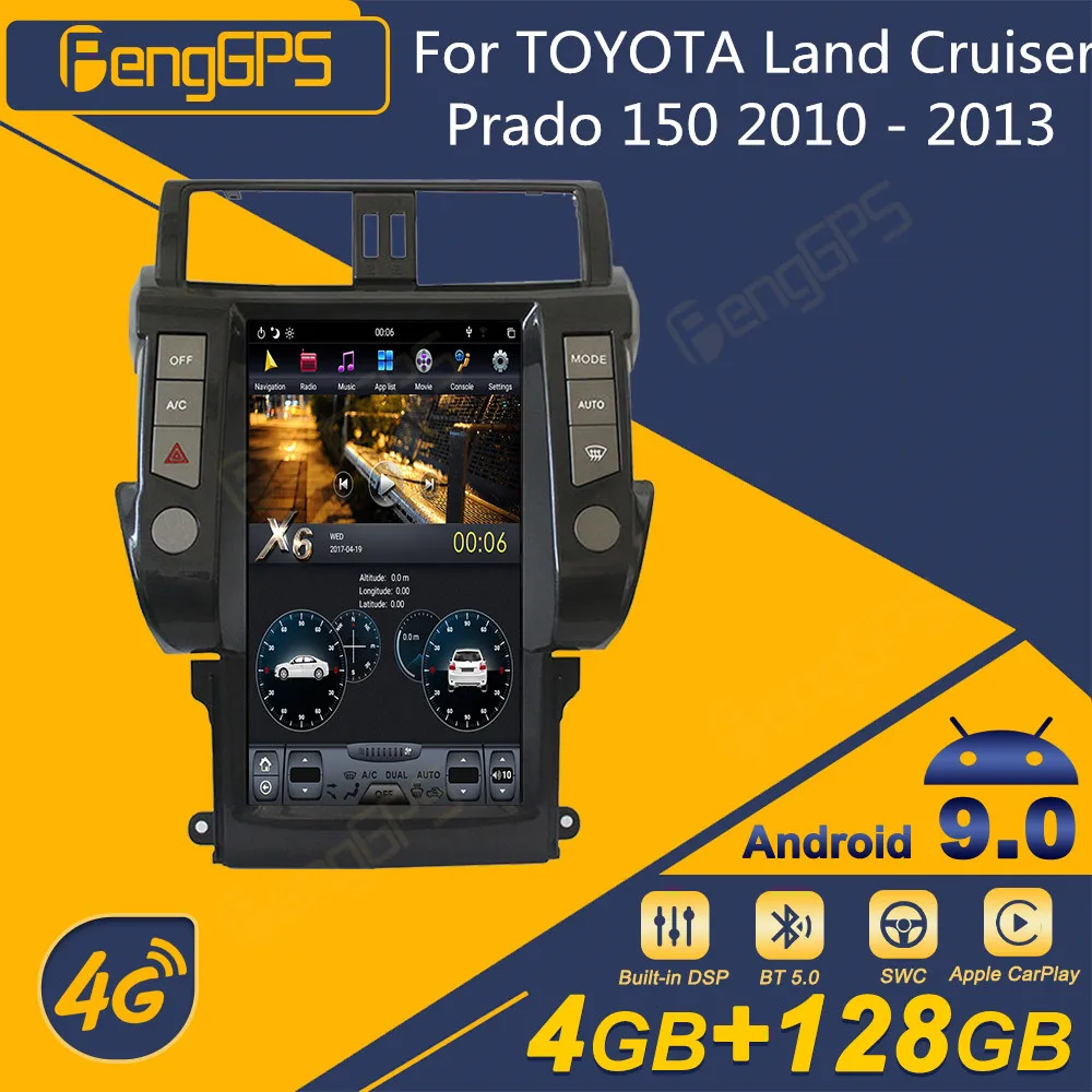 Автомобильный радиоприемник для TOYOTA Land Cruiser Prado 150 2010 -2013, Android, экран Tesla, 2Din стереоприемник, Авторадио, мультимедийный DVD-плеер