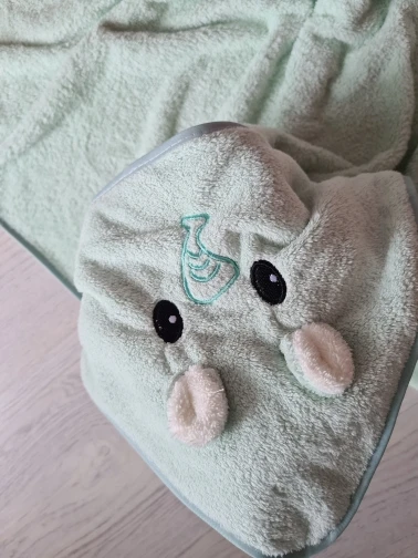 Очень красивое, на ощупь мягкое полотенце. Запаха нет. Нитки не торчат. Швы прошиты аккуратно. Отправил продавец быстро, но наша почта доставляла товар очень долго, хотя ожидание того стоило. Впитывает хорошо. Покупала малышу, думаю, что в таком полотенце ему будет очень удобно.