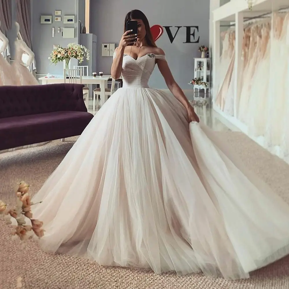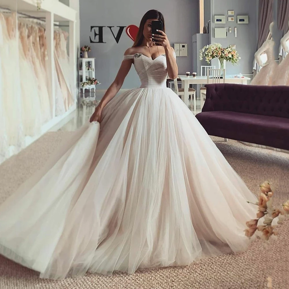 UZN шикарные свадебные платья из тюля цвета слоновой кости, с открытыми плечами, на бретельках, со складками, свадебные платья со шнуровкой сзади, vestido de novia 2022