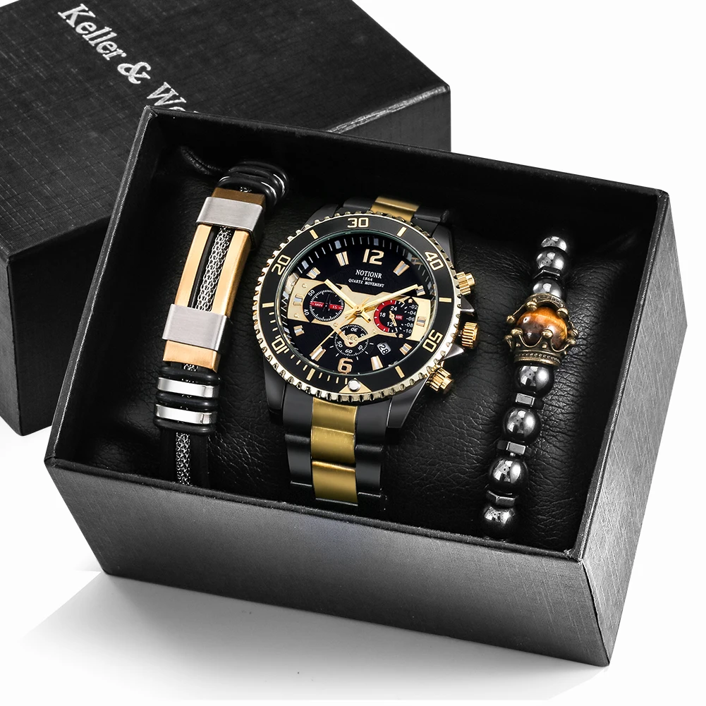 Часы наручные мужские кварцевые деловые, брендовые Роскошные водонепроницаемые, с браслетом, подарочный набор