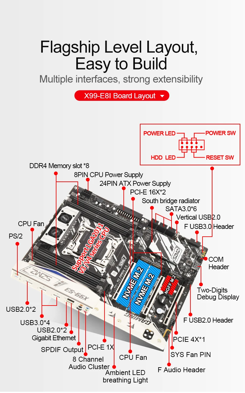 Поддерживаемый Процессор: Xeon E5 V3/V4 LGA2011-V3 процессоры полной серии/Intel Core™6800K 6850K CPU.