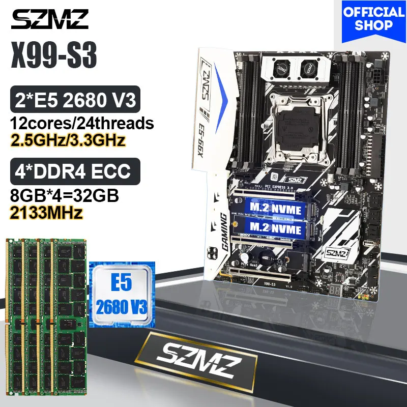 Motherbaord набор включает: 1 * материнская плата + 1 * Xeon E5 2680V 3 CPU + 4*8GB DDR4 2133MHz REG ECC RAM